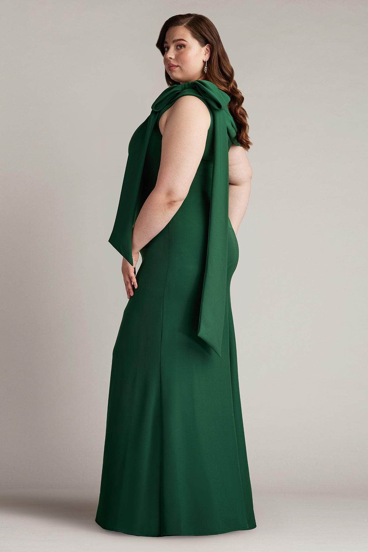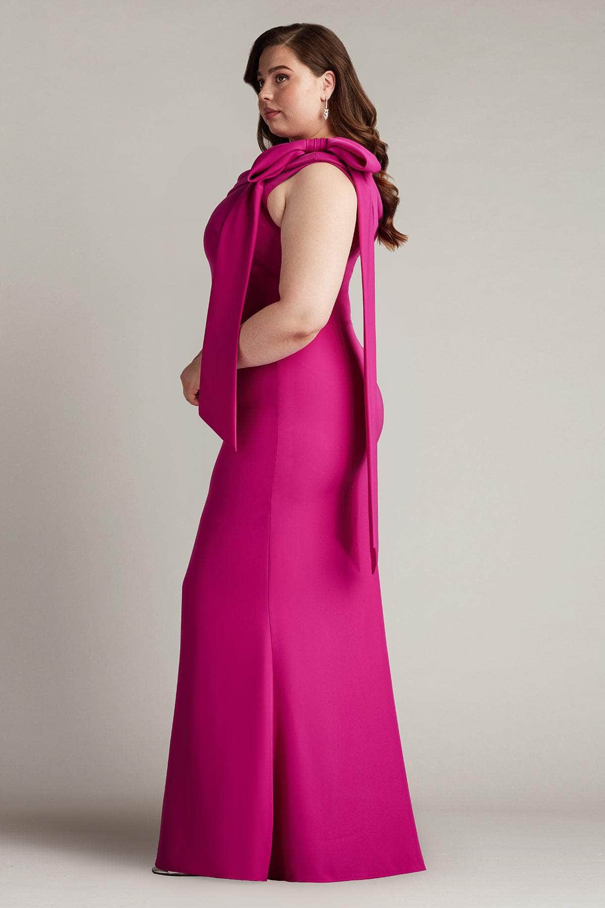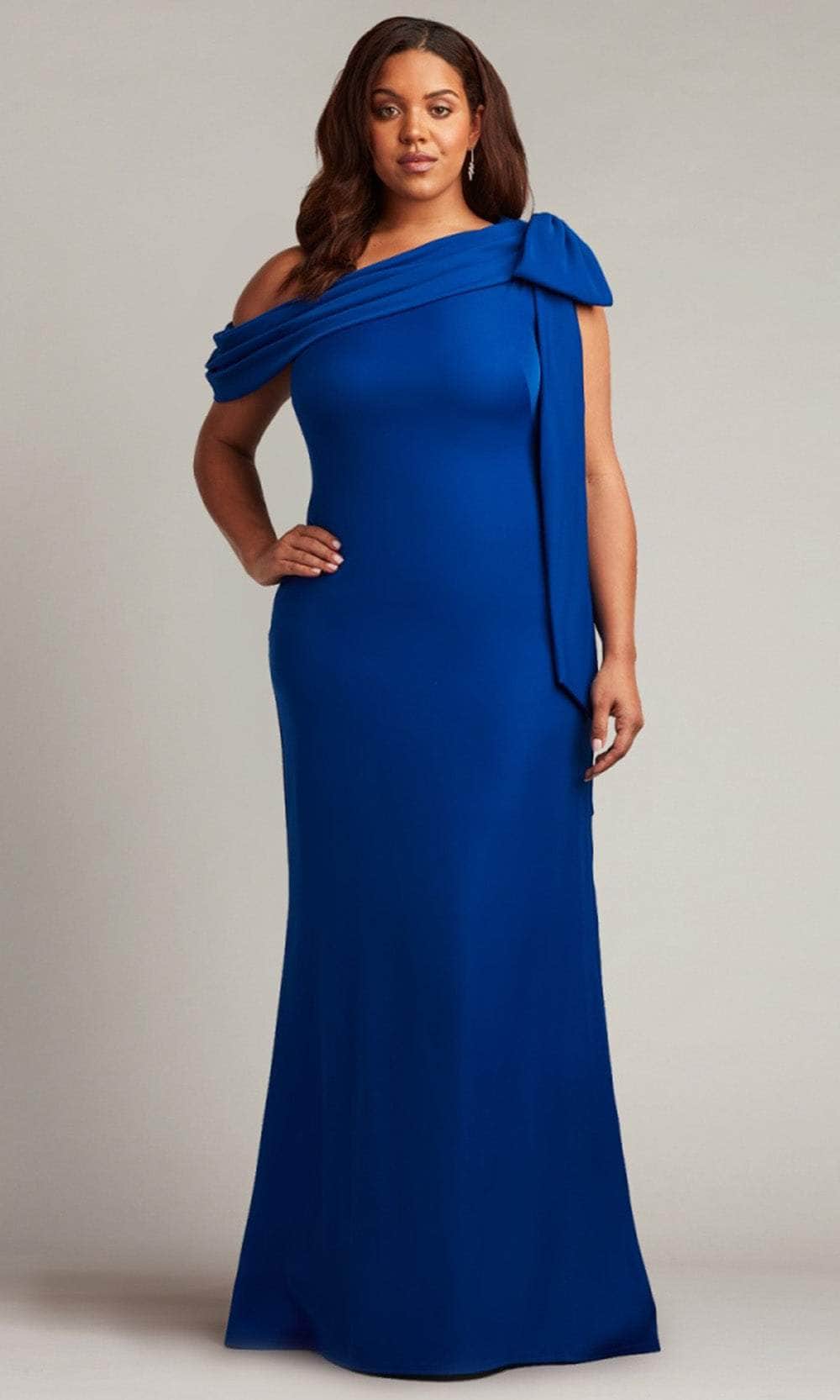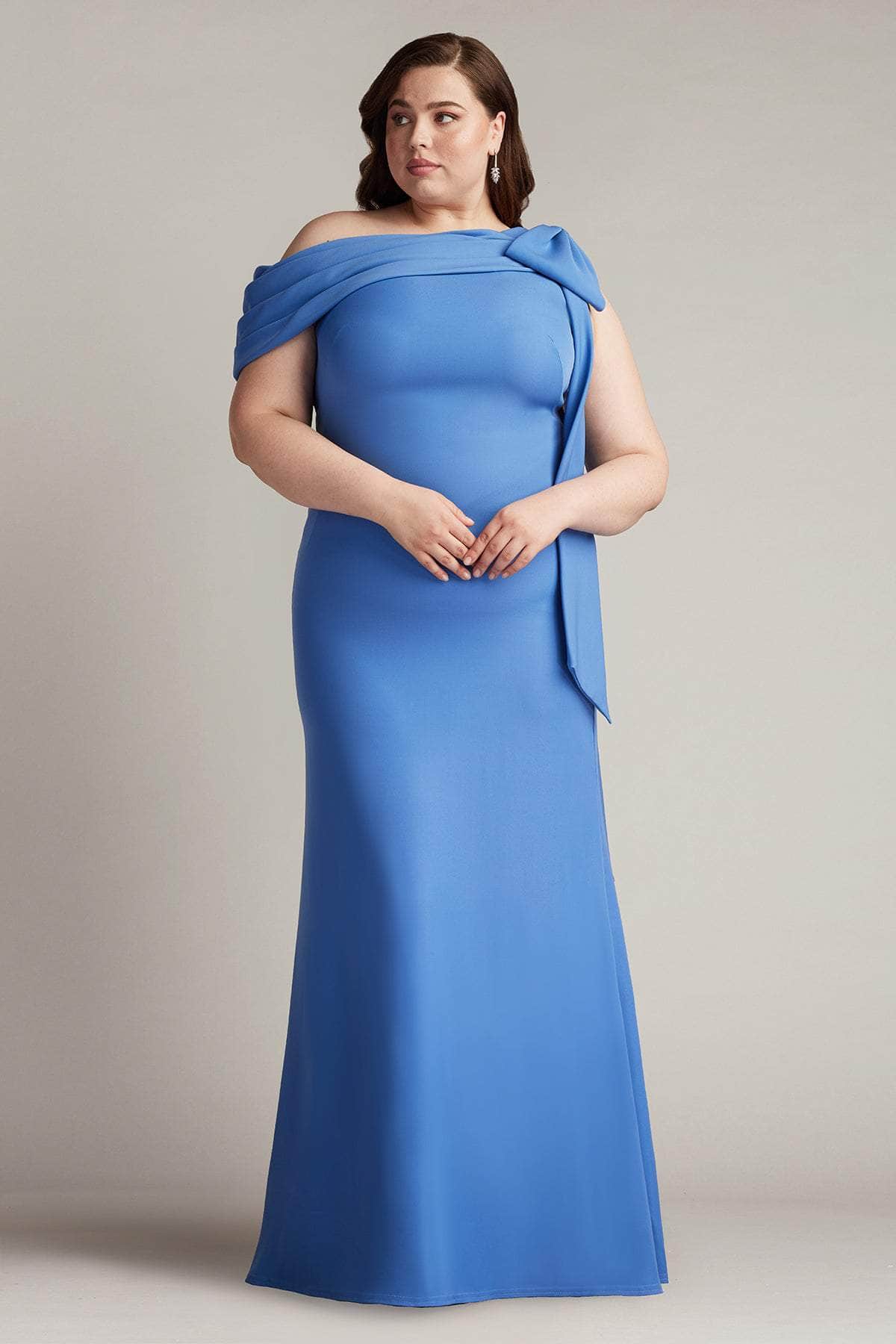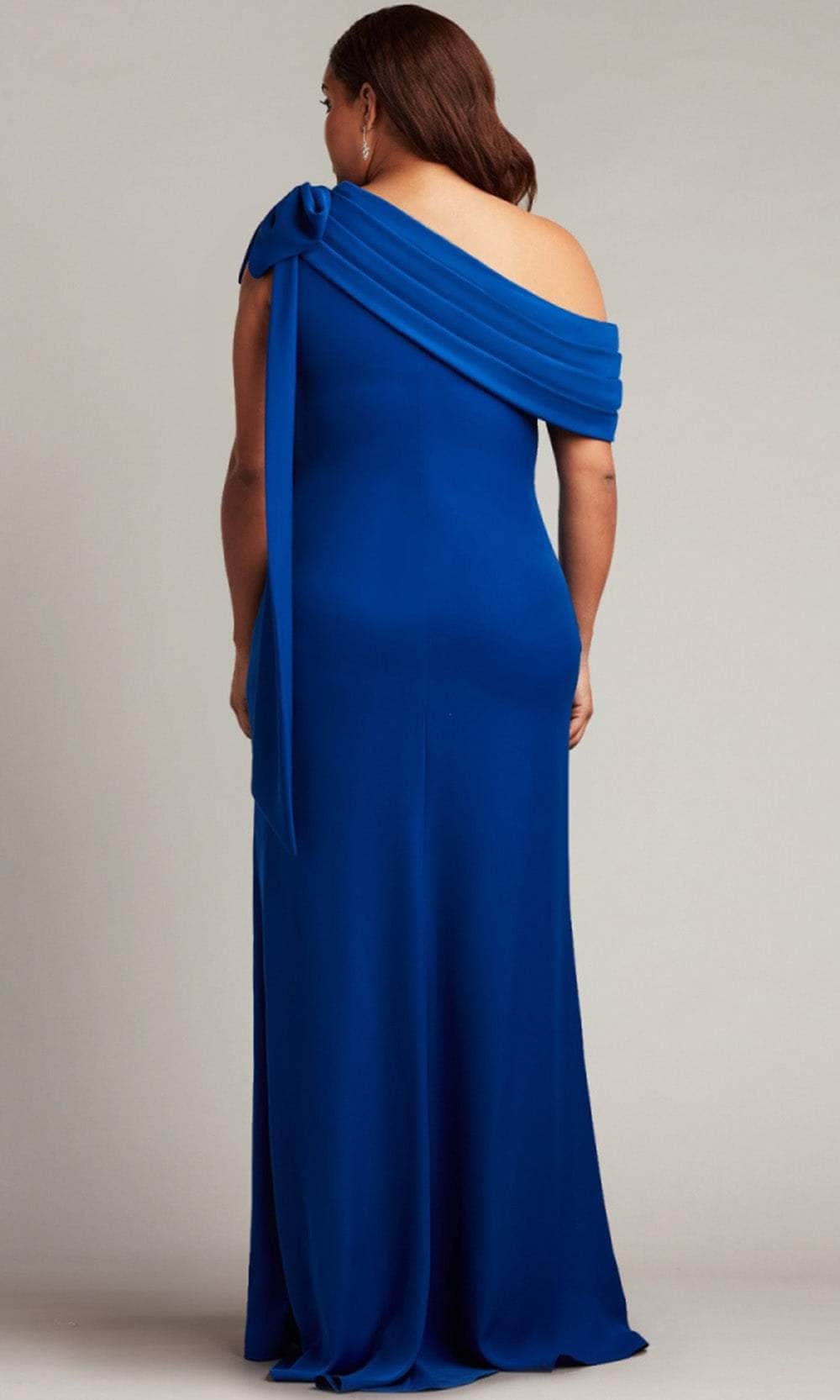 Have an unforgettable evening by wearing this masterpiece from Tadashi Shoji ALG18371LQ. Made from smooth crepe fabric, this gown showcases a draped off-shoulder asymmetric neckline with pleated fold-over details that instantly draw attention. The bow accent on one shoulder adds a touch of feminine elegance, while the mid-open back reveals a sight of your skin. Flawlessly descending to the floor and sweeping train, the skirt creates a sheath silhouette. Flatter your shape with a sculpted gown from Tadashi Shoji ALG18371LQ.
