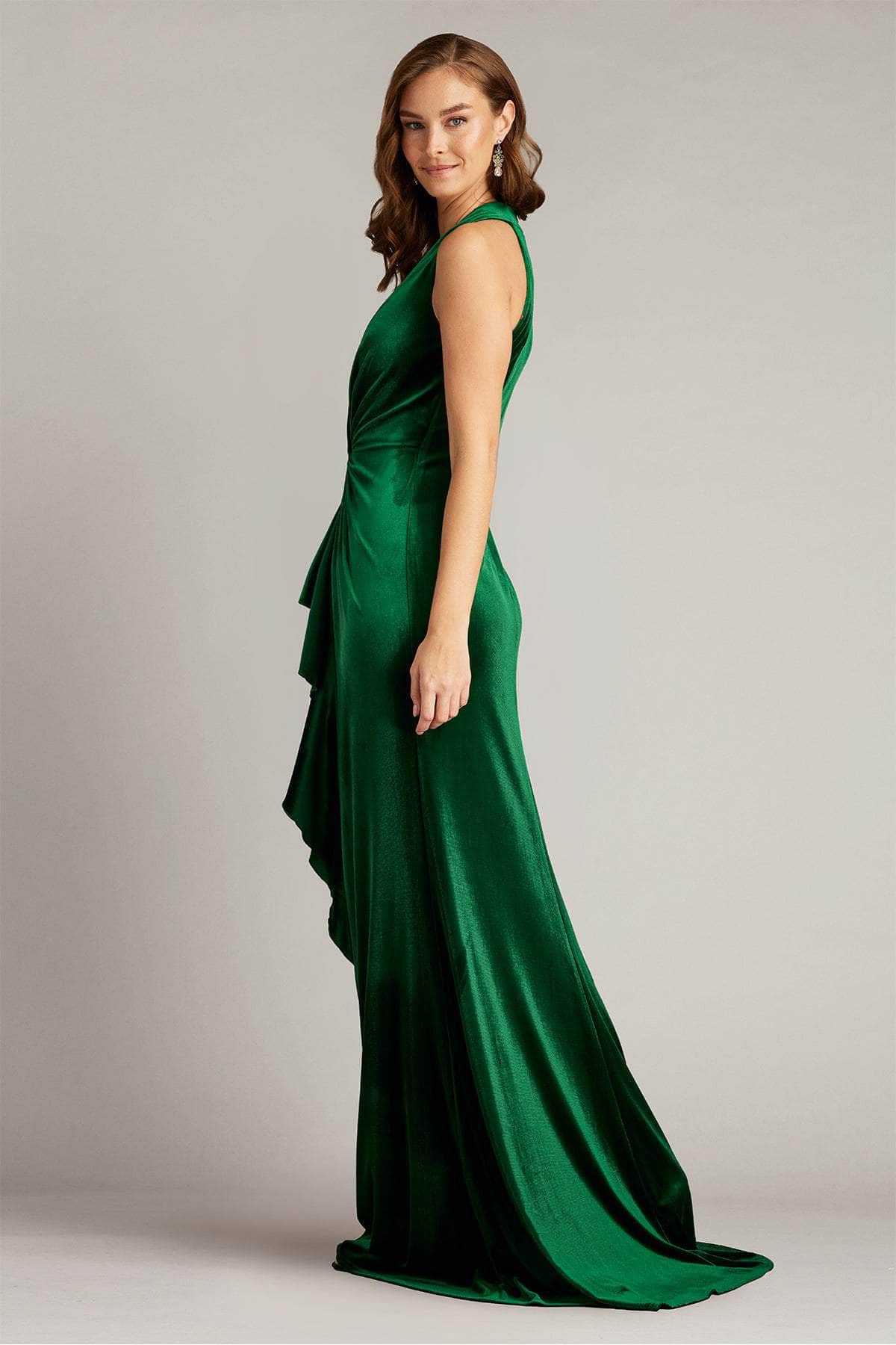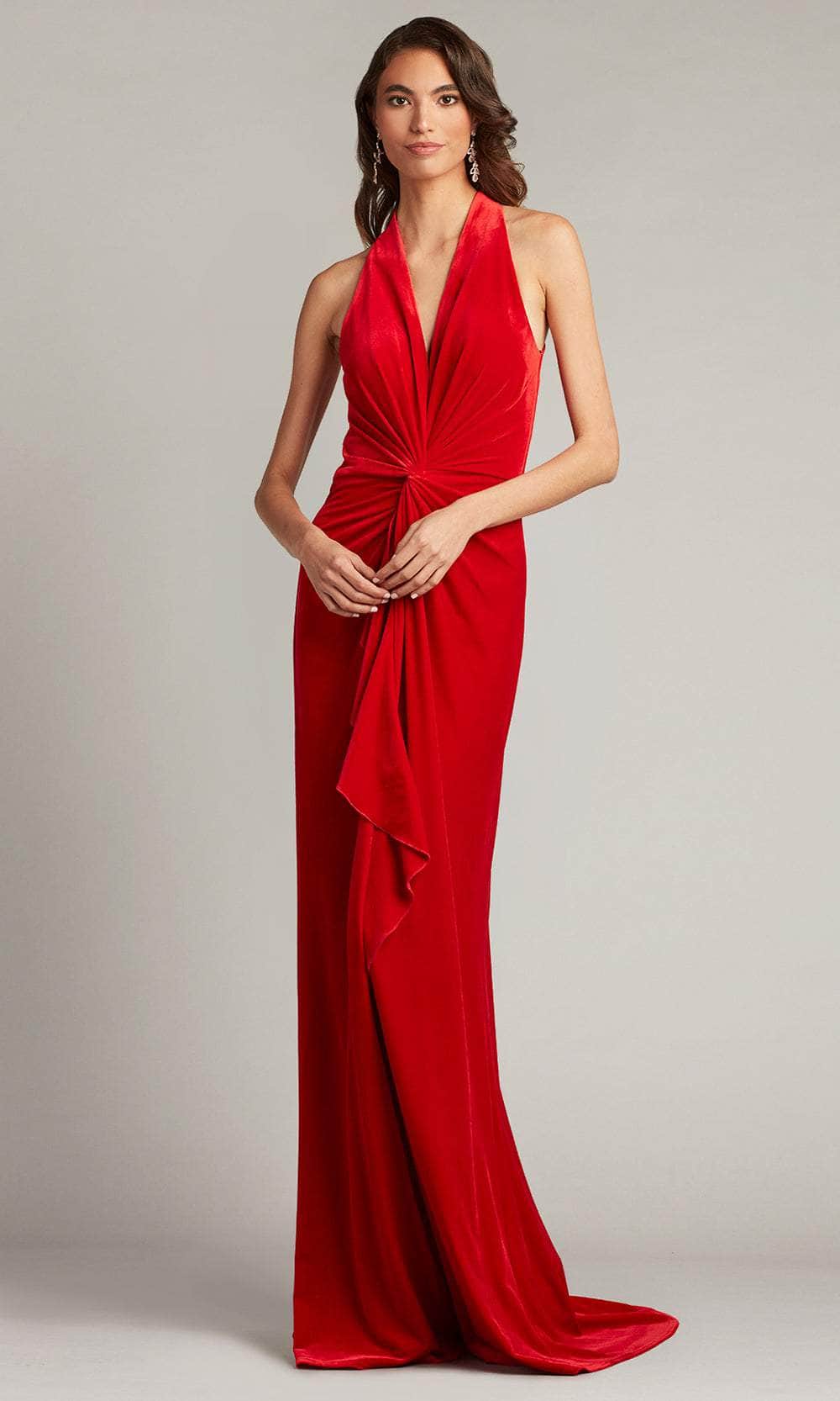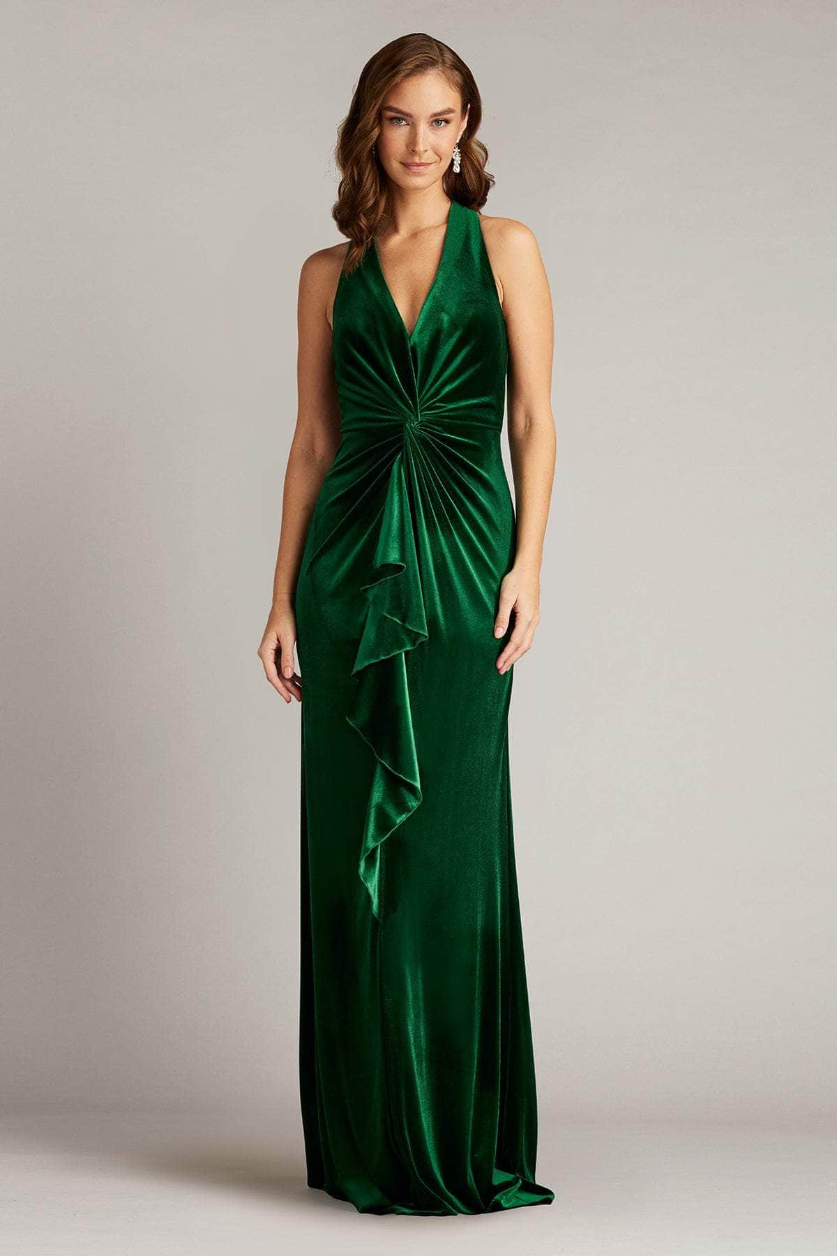 Be the spectacular belle on your next formal event in this Tadashi Shoji BAL23433L formal dress. Everyone will be left speechless with your aura as you wear this dress, featuring an alluring V-neckline on a fitted and sleeveless bodice. This attire also reveals a full back, enclosed by a zipper to achieve a polished finish. A twisted knot on the waist which results to draping effects greatly elevates the appeal of this attire. Additionally, ruffle details which cascades down to the floor length of the sheath skirt makes the dress look more fabulous. Be dressed up beautifully in this simple yet extremely sophisticated Tadashi Shoji BAL23433L masterpiece.
