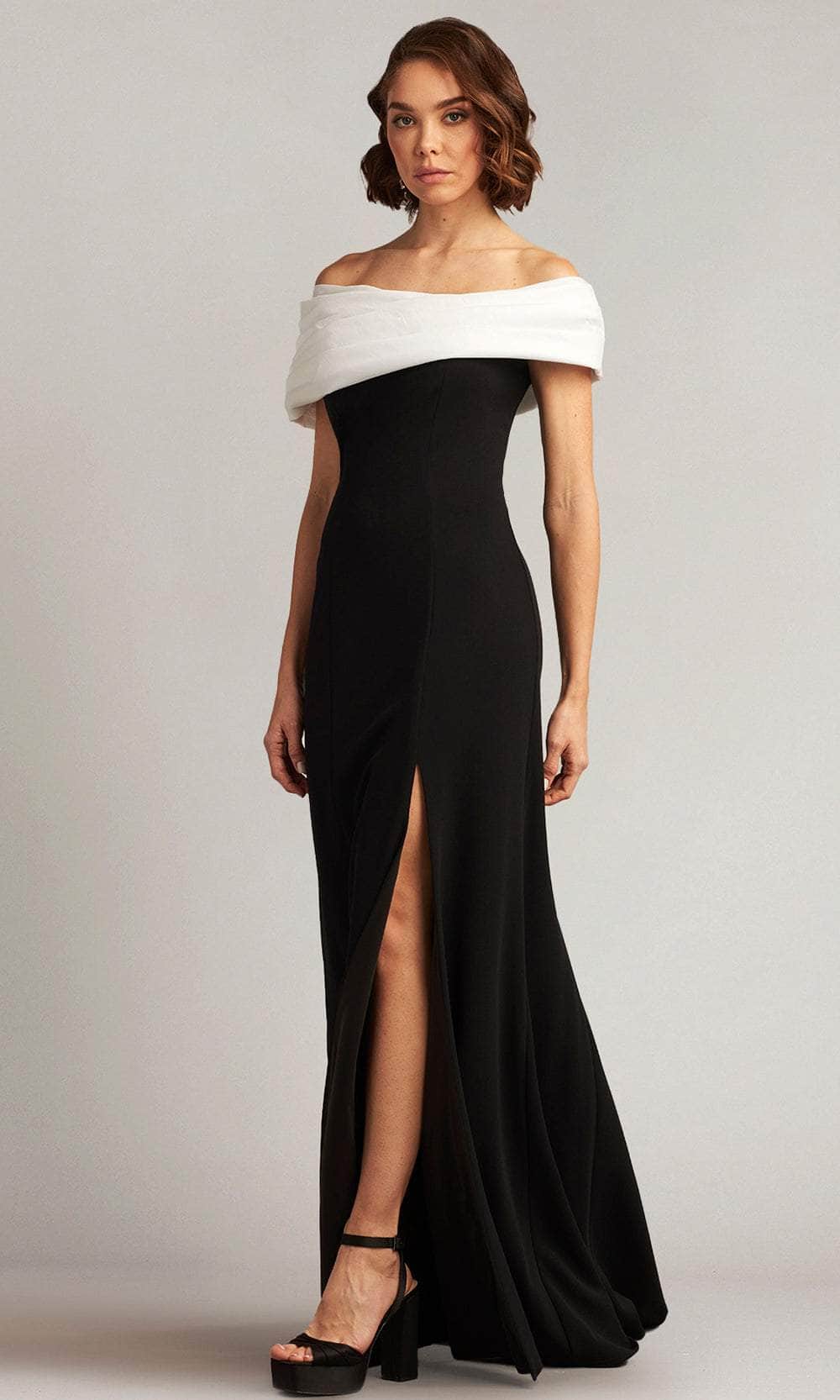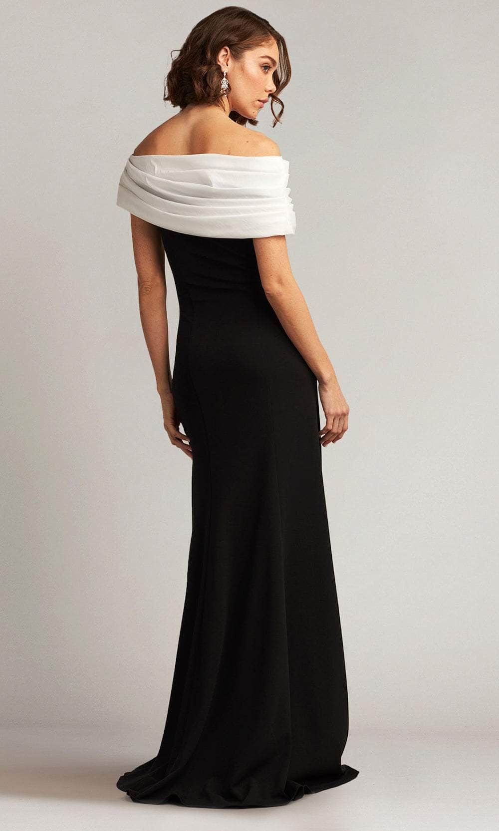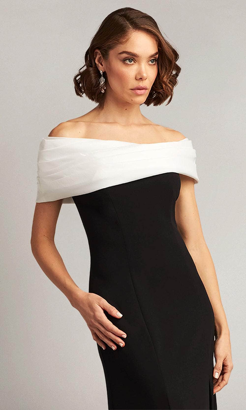Flaunt your figure in this fabulous and elegant Tadashi Shoji BOS24113L evening dress. This two-toned dress will help you earn your spotlight with its amazing features. It displays an endearing draped off-shoulder neckline on a fitted bodice, also displaying princess seams details. Its back is styled in a mid-open way, while the sheath skirt reveals a slit, adding an enticing effect on this classy attire. Dive into a divine event in this sophisticated Tadashi Shoji BOS24113L masterpiece. Model is wearing Ivory/Black color.