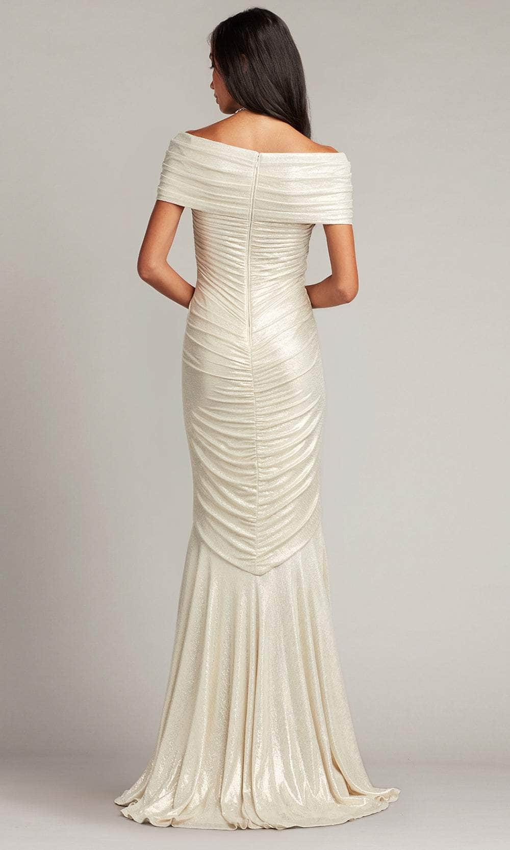 Captivate everyone with your high level of sophistication in this Tadashi Shoji BSJ24023L. Everyone will admire your beauty and poise as you wear this dress which features an elegant wide V-neckline, complemented by delightful cap sleeves. This creation also reveals a full back that is enclosed by a zipper to achieve a refined finish. Additionally, this dress showcases remarkable draping effects both on the neckline and the bodice, making this dress a truly exceptional outfit to wear. It also displays a sheath silhouette which is evident down to its floor length. Look stunning and fascinate everyone around you with this Tadashi Shoji BSJ24023L masterpiece. Model is wearing Ivory color.