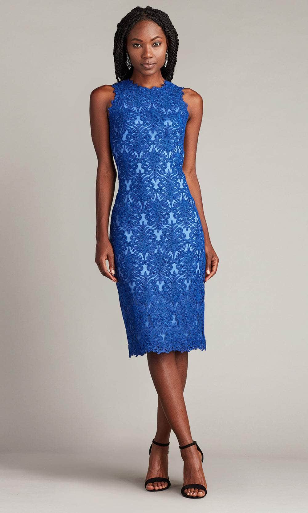 Exude timeless sophistication with a touch of modern edge in the Tadashi Shoji CDY18233MX masterpiece. This captivating cocktail dress flatters the figure with its meticulously tailored silhouette crafted from luxurious fabric. The bodice, adorned with captivating cord embroidery, features a jewel neckline for a touch of classic elegance. The sleeveless design offers a touch of minimalist chic, while the full back ensures a clean and sophisticated finish. The sheath skirt with its scalloped edging adds a touch of playful detail, while the tea-length hem. This sophisticated Tadashi Shoji CDY18233MX masterpiece allows you to cultivate an aura of effortless elegance. Model is wearing the Mystic Blue color.