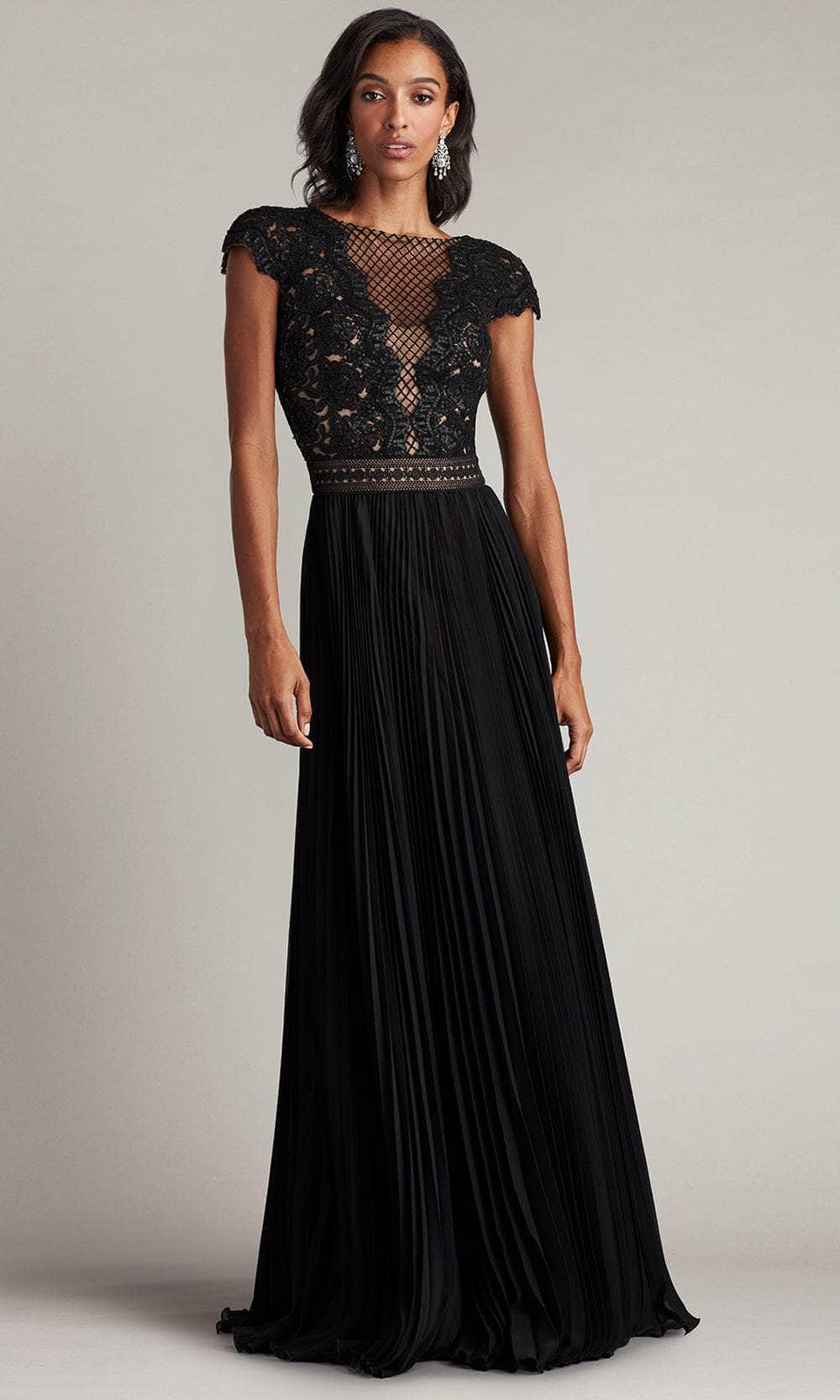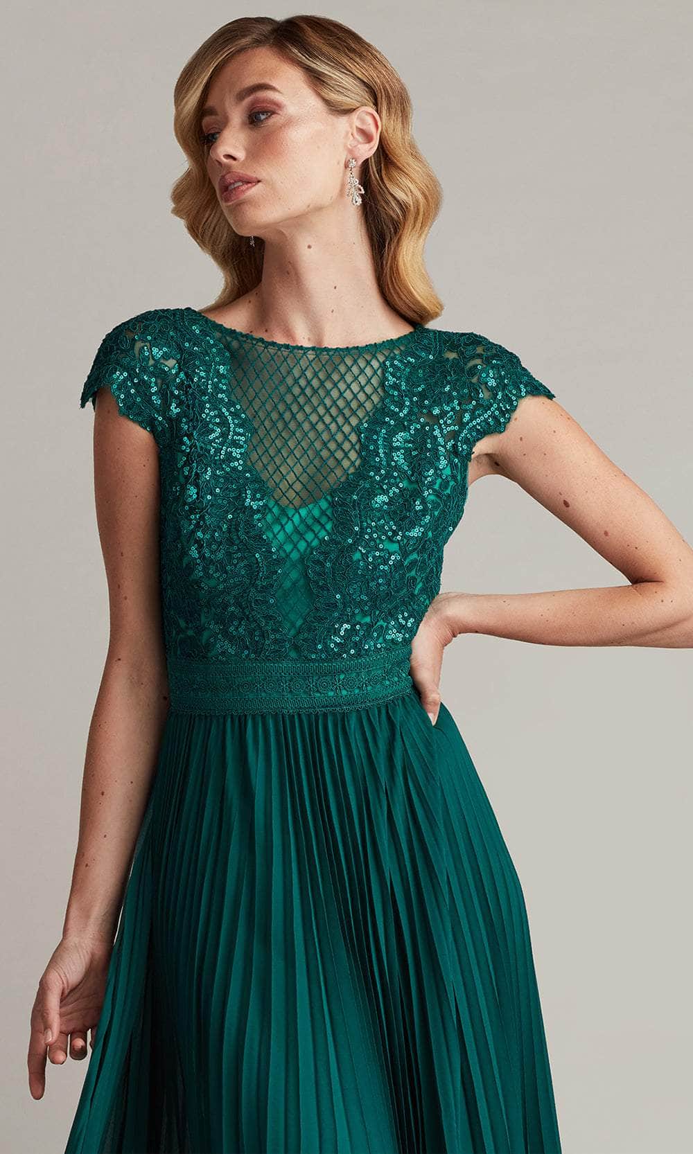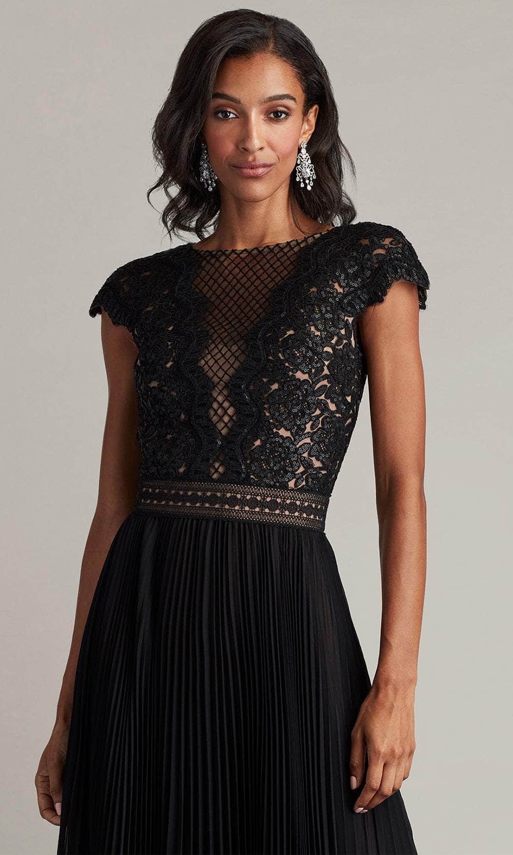 Shine like a celestial goddess in the Tadashi Shoji CFC24324L masterpiece. This stunning gown is adorned with exquisite paillette embroidery, designed to catch the light with every graceful movement. The illusion bateau neckline exudes timeless elegance, while the cap sleeves add a chic modern twist. A subtle trim at the waist highlights your figure, flowing into a full, pleated chiffon skirt. The voluminous silhouette sways beautifully as you move, ensuring all eyes are on you. Perfect for grand occasions, this Tadashi Shoji CFC24324L embodies sophistication and beauty, leaving an unforgettable impression. Models are wearing the Bamboo and Black/Nude colors.