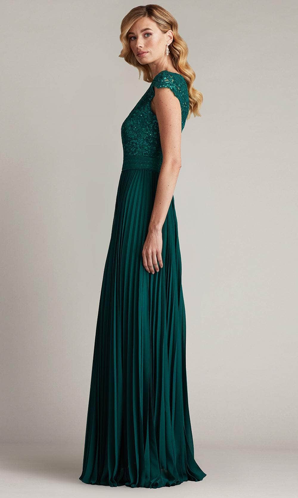 | Details: | Cap Sleeves, Embroidered Details, Tailored Lining, Full Back, Pleated Skirt, Sweep Train |