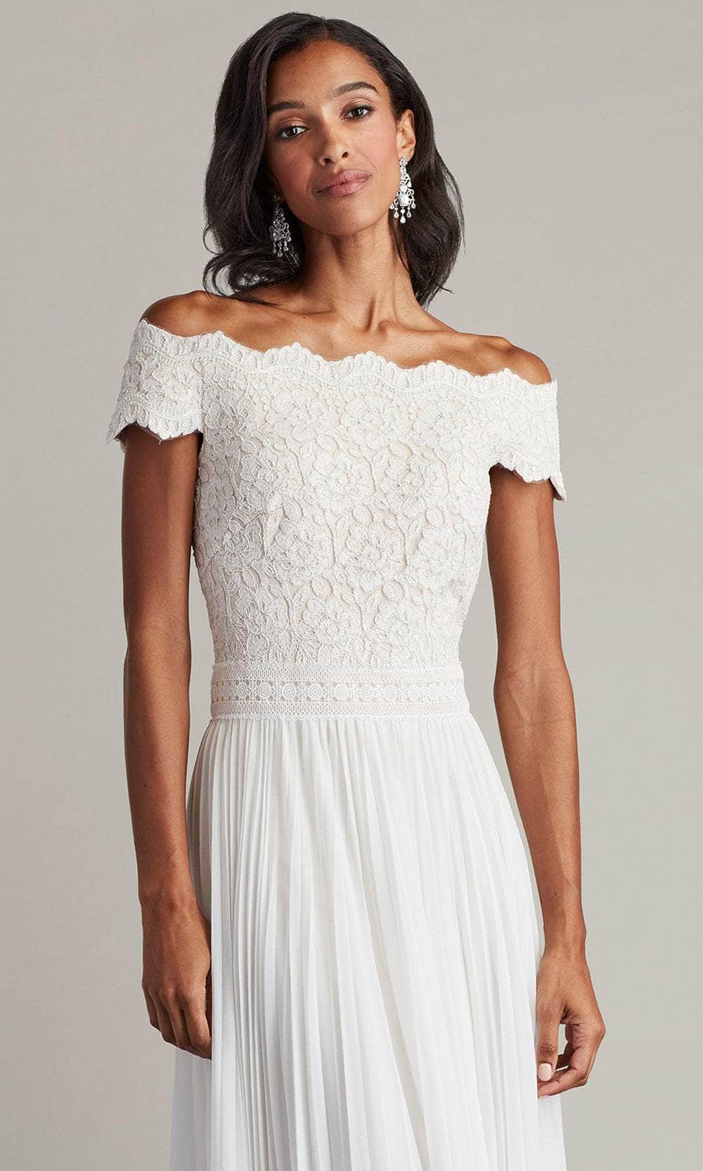 Radiate brilliance under the spotlight in the Tadashi Shoji CFC24341L masterpiece. This mesmerizing gown shimmers with captivating allure, thanks to its exquisite paillette embroidery that catches the light with every movement. The off-the-shoulder design adds a touch of romantic charm, while a subtle trim flatters your figure and adds a touch of sophisticated structure. The full pleated tulle skirt cascades from the waist, creating a voluminous silhouette that sways gracefully with every step. Ideal for grand ballrooms, red-carpet events, or any black-tie affair, the Tadashi Shoji CFC24341L masterpiece ensures you'll be the center of attention. Models are wearing the Ivory/Petal and Mist colors.