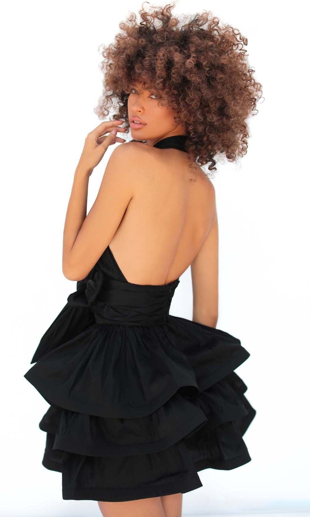 Charm everyone with the impeccable style of this Tarik Ediz 51167 creation. Gathering with pleats as it creates a cross bodice, this dress features a halter neckline with a cutout accent. Accented with a ribbon detail and an open back. The tiered skirt reveals a short hemline. Orchestrate a night of pure bliss in this Tarik Ediz masterpiece. Models ate wearing the Black, Fuchsia, Emerald and Royal colors.
