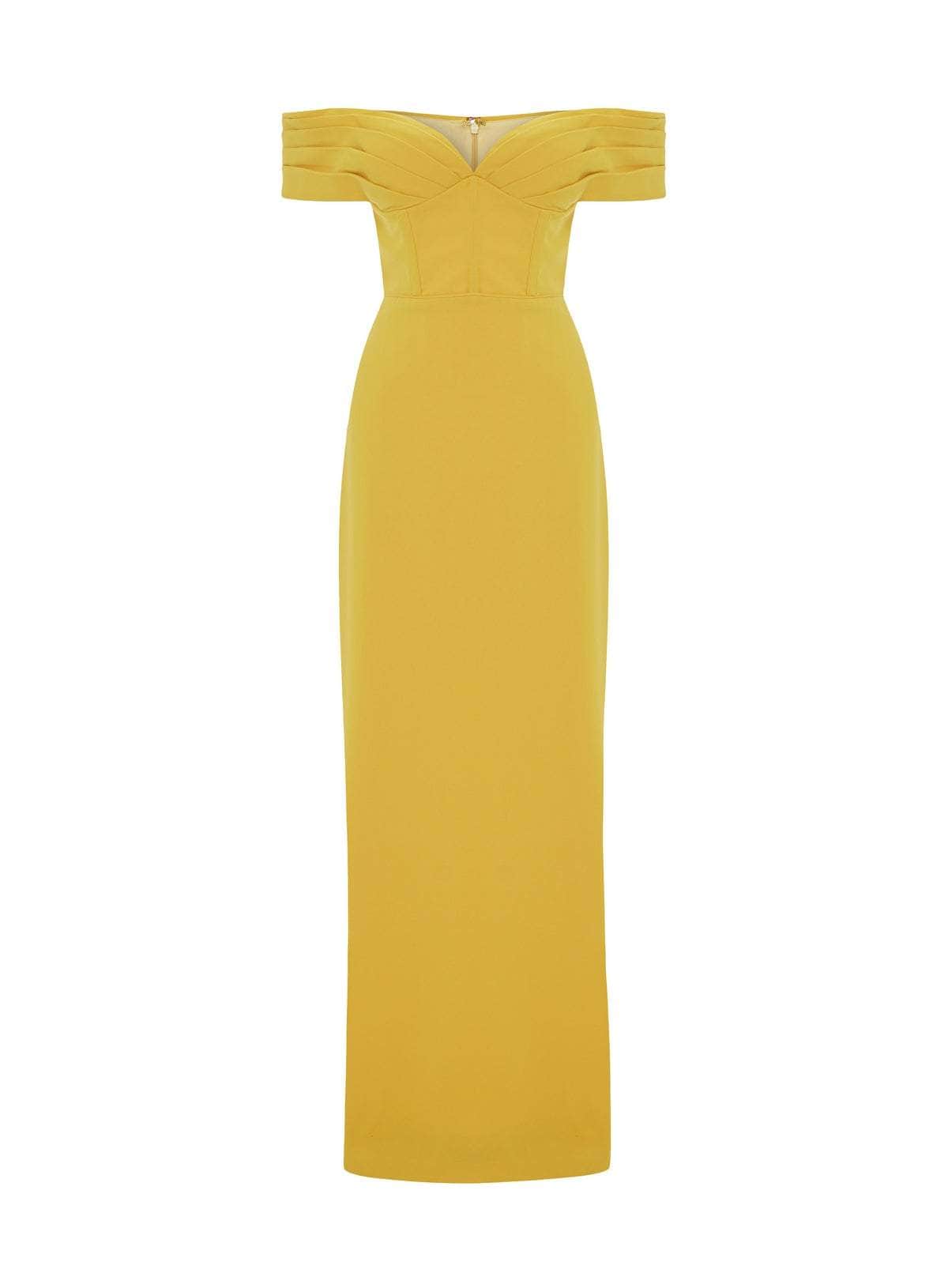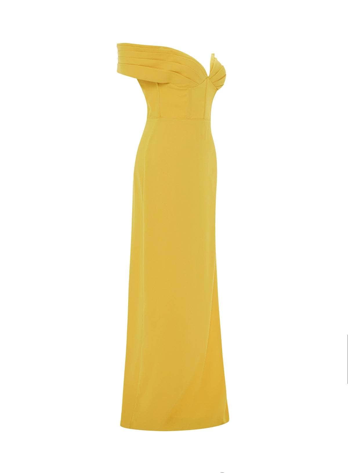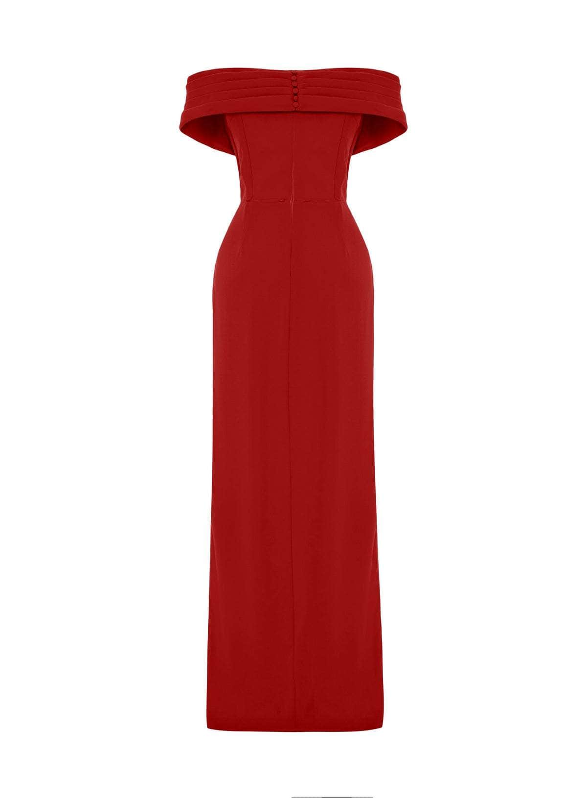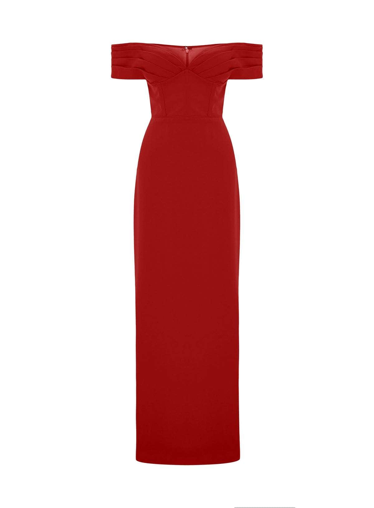Flaunt those exceptional style in this stunningly crafted Tarik Ediz 52048 creation. Softly rendered with soft drapes crafting the bustier detail, this stylish piece features an off shoulder neckline atop a corset structured form. Designed with a sexy back detail with a zipper closure, the sheath skirt parts with a slit as it stunningly ends with a floor grazing sweep of train. Go beyond expectations when flaunting this exquisitely crafted Tarik Ediz masterpiece. Model is wearing the Red color.