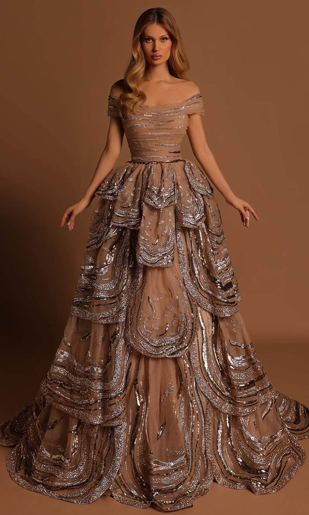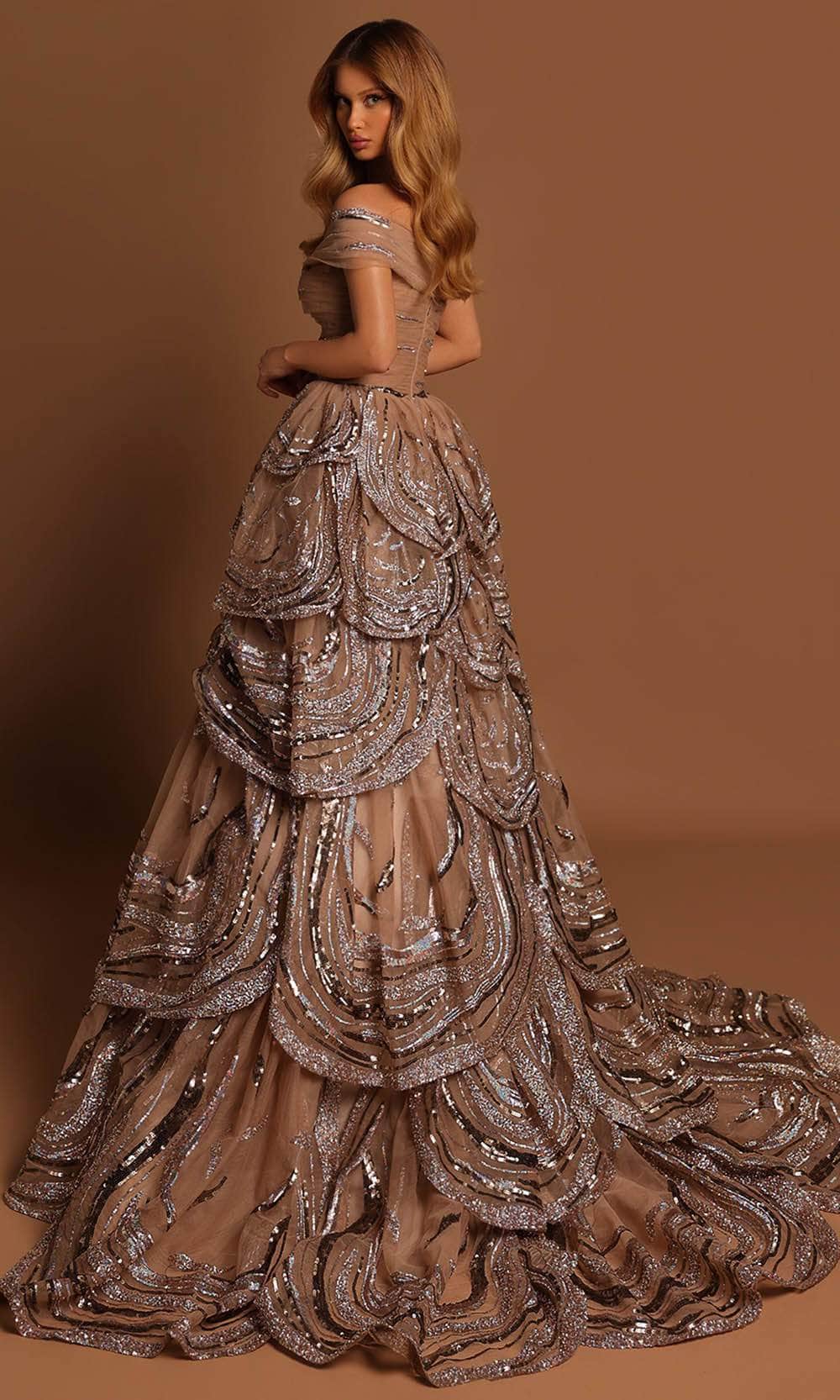 Tarik Ediz 98548 - Sequined Tiered A-Line Evening Gown
