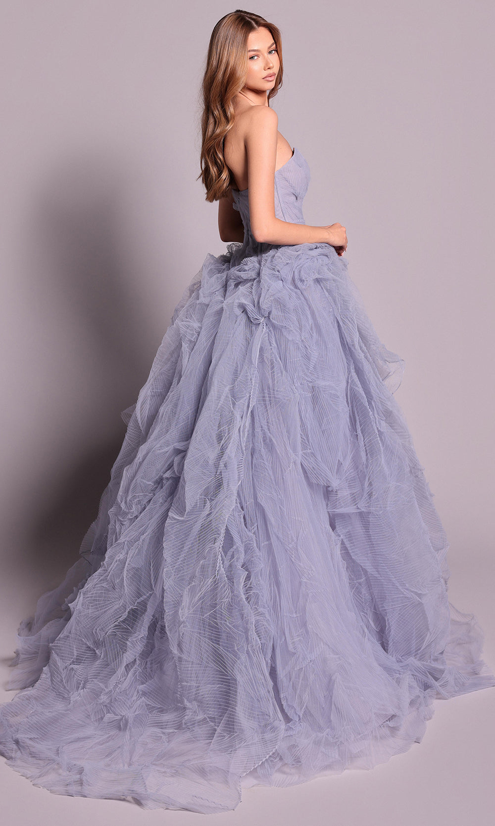 Every moment feels elevated in the Tarik Ediz 99132, a striking gown created for special celebrations. Its sweetheart neckline frames the upper body beautifully, while a structured corset bodice shapes the waist for a flattering finish. Layers of crushed tulle fall into a full, ruffled ballgown skirt that moves with fluid energy, creating dimension and drama. Perfect for those who want a statement that feels distinctive yet elegant, the Tarik Ediz 99132 transforms any occasion into an unforgettable experience with its unique silhouette and detailed craftsmanship.