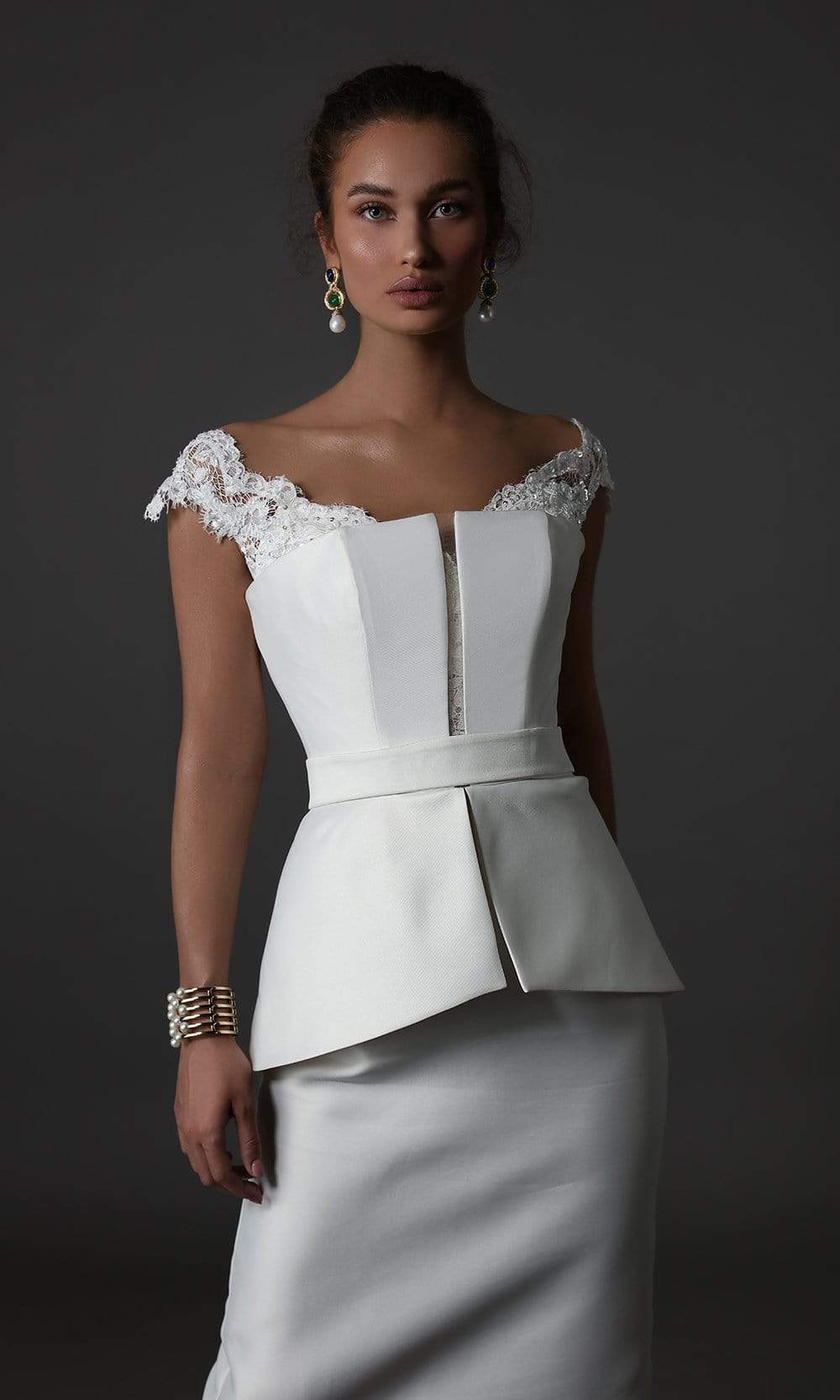 Tarik Ediz - Lace Off Shoulder Sheath Dress 96134