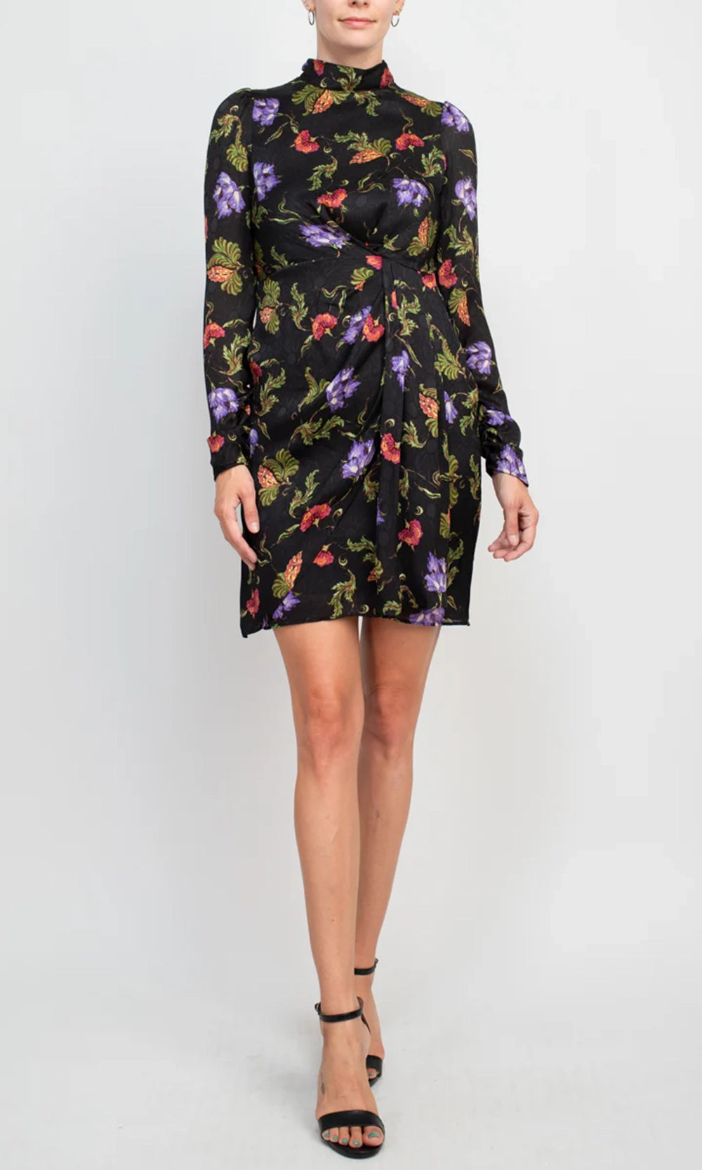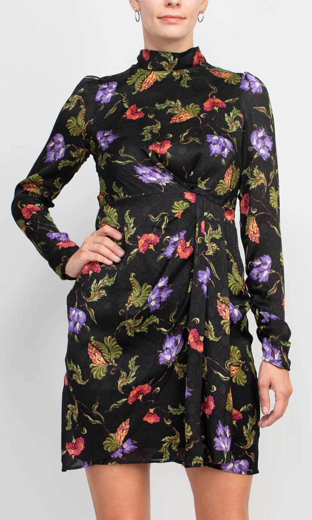 | Details: | Long Sleeves, Pleated Side, Floral Print, Fitted Mini |