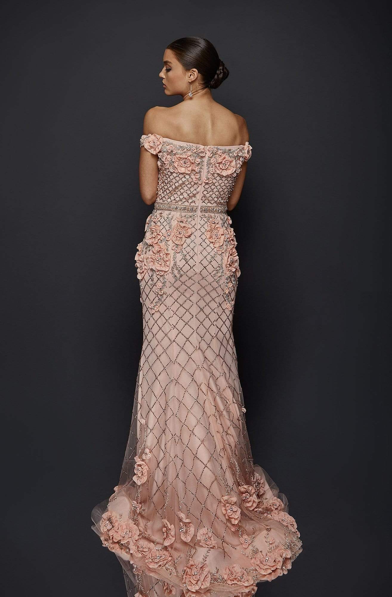 You are certain to capture the hearts and attention of everyone at your special event. This Terani 1922GL0682 evening dress is our special offer to you. This stunning dress makes you feel complete, confident, and comfortable. It’s 3D floral embellished net designed fabric, the eye-catching design and finally, the artistic tailoring of it makes you absolutely in love with this spectacular style. This beautiful dress features an embellished off-shoulder, deep open sweetheart neckline, embroidered bodice, exposing the beauty and soft skin of the upper body, especially the neck, collarbone, and shoulders, it continues to the back of the dress with fascinating cover, going to the snugged waistline of the dress, containing the hips, falling down to a hugging caressing embellished mermaid long skirt, with a stunning queen silhouette adding a Cinderella vibe to the whole perfect style of it.