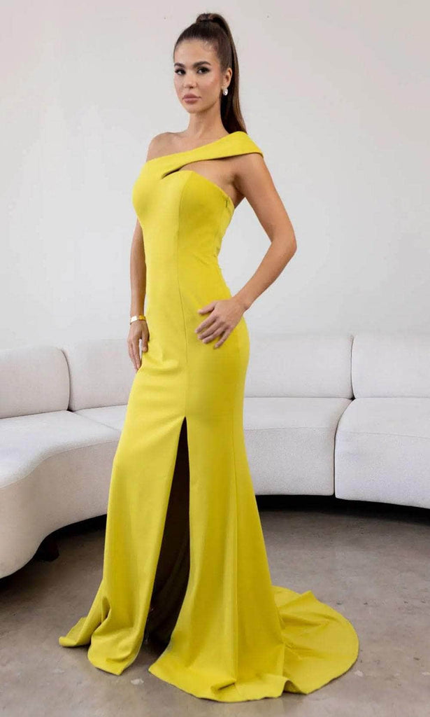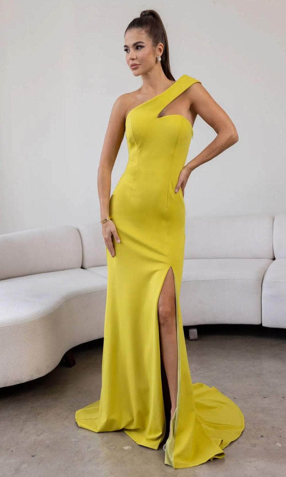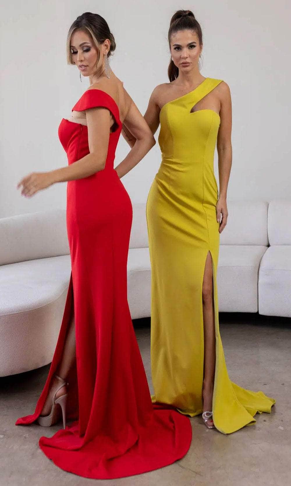 Indulge in a romantic evening with an exquisite touch in this Terani Couture 241E2416 masterpiece. Designed with a captivatingly tailored silhouette that enhances its jersey fabric, this gown features a one-shoulder neckline and a cut-in bodice design. The partial open back adds allure, secured with a concealed zipper closure. Opening with a stylish slit, the trumpet skirt gracefully flows to the floor, creating a sweeping denouement. Make a stunning entrance and radiate in the allure of this beautiful Terani Couture 241E2416 creation. Models are wearing the Red and Green colors.