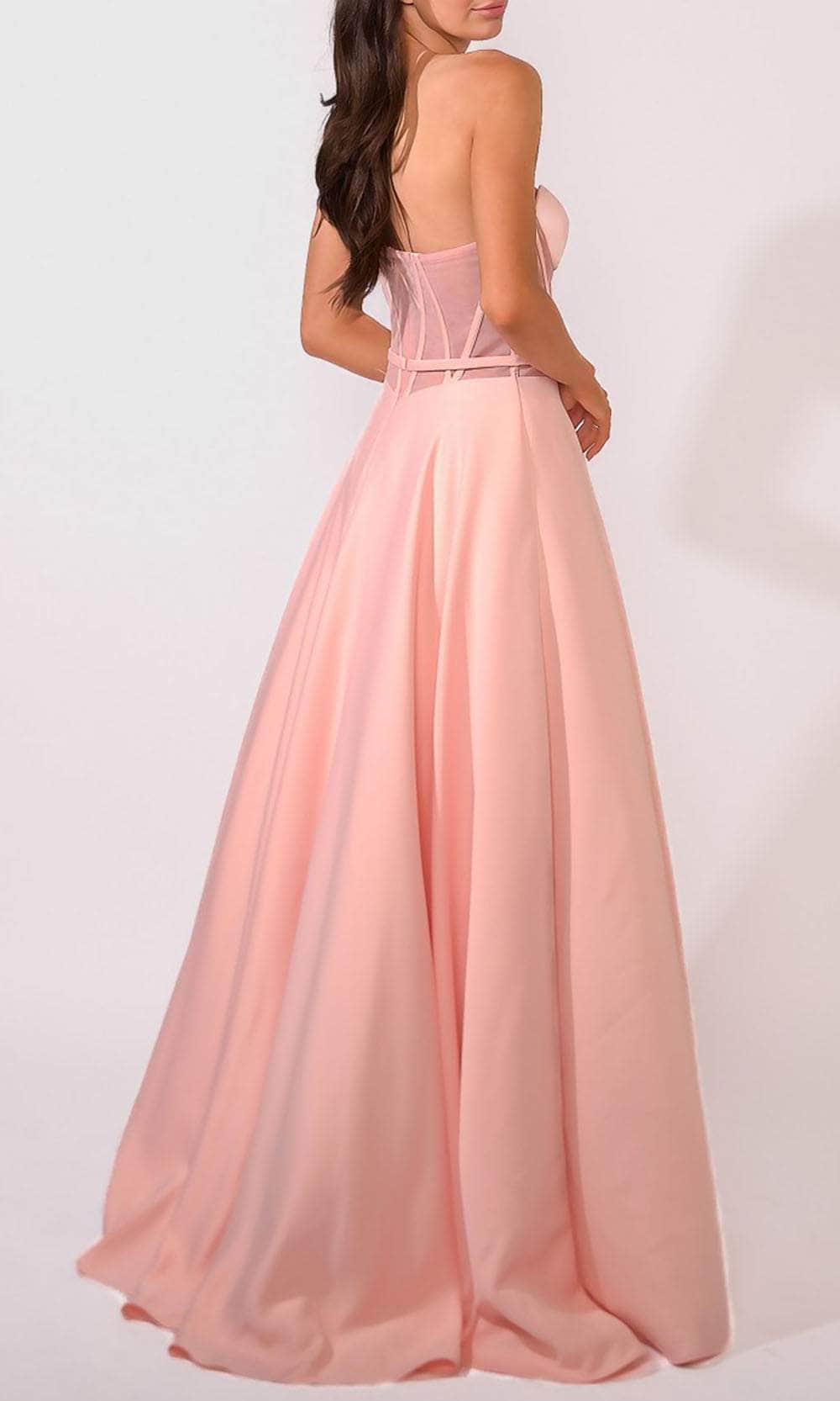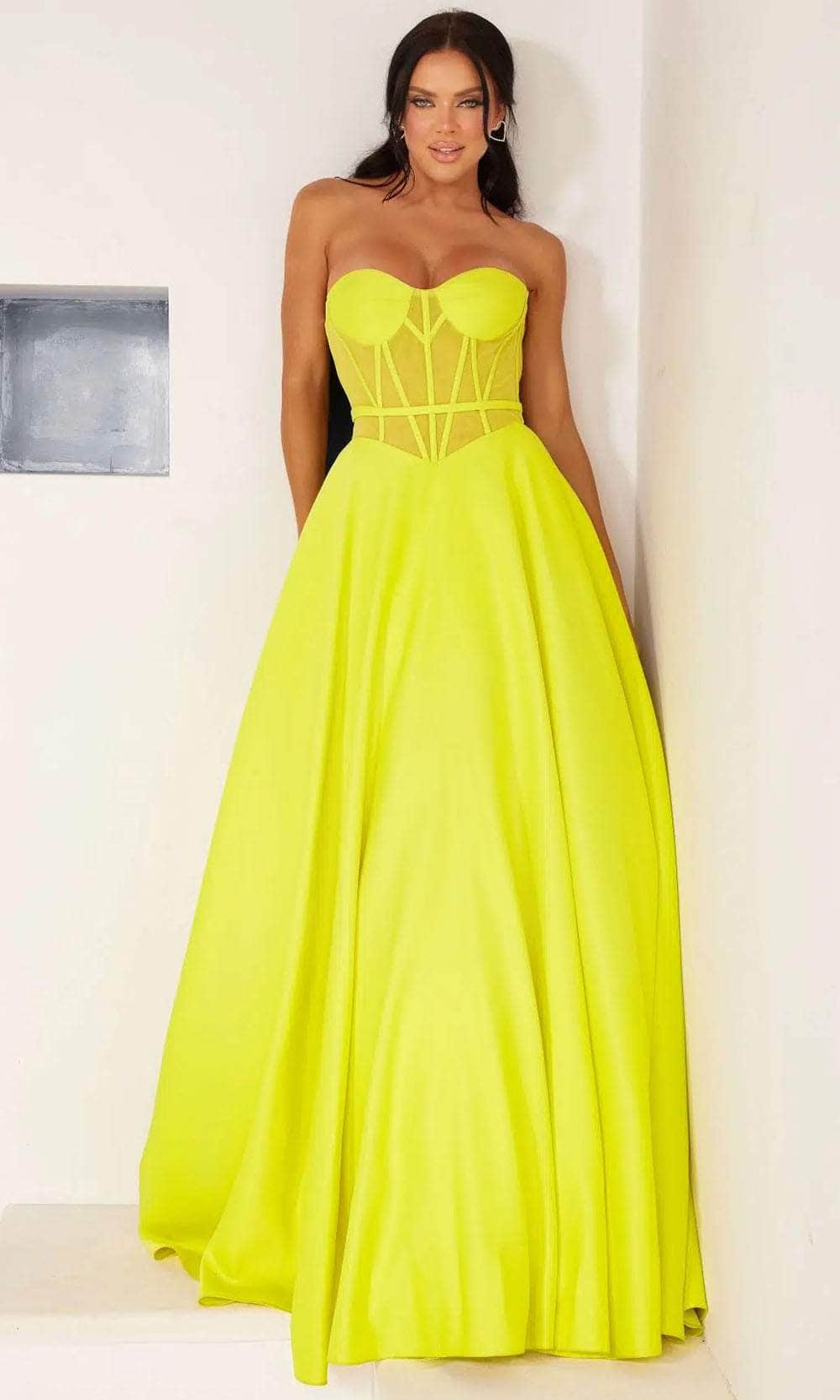 Be the delight of the eyes of everyone in this fabulous creation from Terani Couture 241P2046 enchanting dress that effortlessly combines simplicity with sophistication, ensuring you stand out in style. The strapless design exudes timeless charm, and the sheer overlay adds a touch of allure. Crafted from luxurious matte satin, this Terani Couture 241P2046 is both elegant and comfortable to wear, promising a memorable and refined look for your special occasion. Model is wearing Chartreuse and Blush colors.