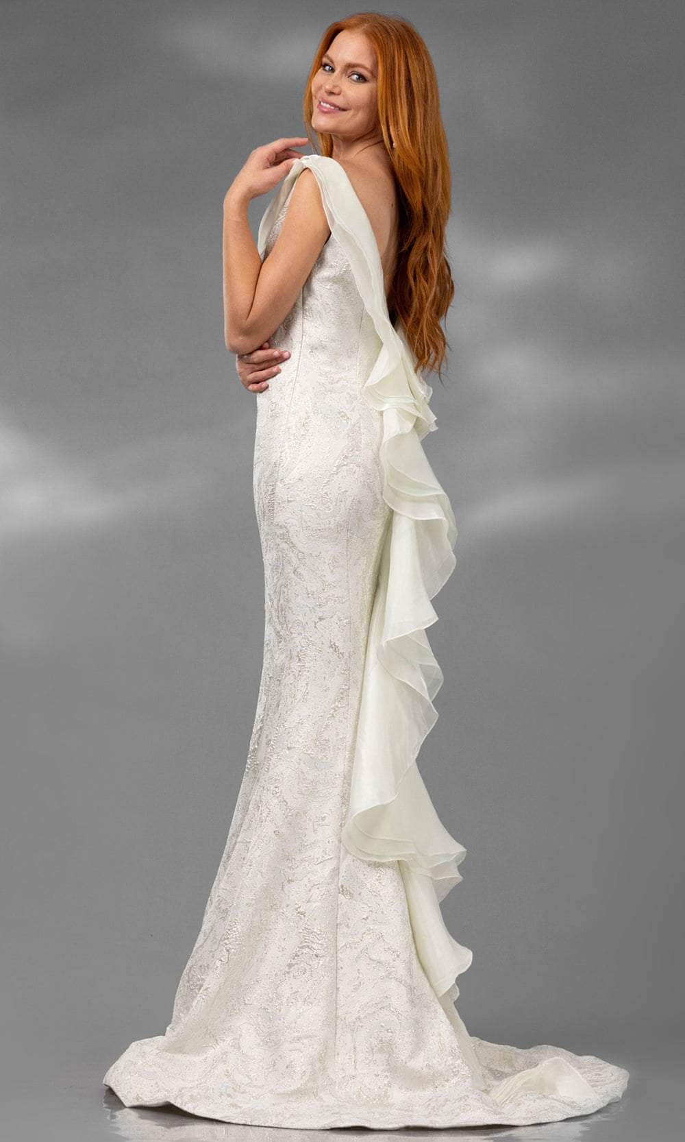 Set a style that would engage everyone in this chic Terani Couture 251E4256 masterpiece. The sleeveless outfit flaunts a low V-shaped back with cascading ruffles, offering a stunning blend of drama and grace that will guarantee to steal the spotlight. A cowl neckline is supported by wide straps, while the detachable feathers and 3D floral applique on one shoulder exude extra glamour. The skirt is designed in a mermaid silhouette and spills to sweep train for a grandeur finish. This Terani Couture 251E4256 gown is the perfect match for the girl who wants to look sexy and fashion-forward. Model is wearing Sage Gold color.