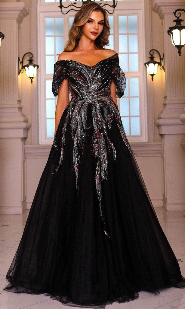 Embody grace and sophistication in the Terani Couture 251M4411 gown, a masterpiece designed to make you feel regal at any special event. This elegant MOB Ballgown, made from sumptuous beaded tulle, combines comfort and luxury effortlessly. Featuring an off-the-shoulder neckline with delicate cap sleeves, it adds a chic touch to the design. The gown has no slit, maintaining a refined aesthetic, and is fastened with a secure hook-and-eye closure and hidden zipper for a perfect fit. Ideal for mother-of-the-bride occasions or other grand celebrations, this gown will leave you glowing with timeless beauty. Model is wearing Black Multi.table class="table" pdp>