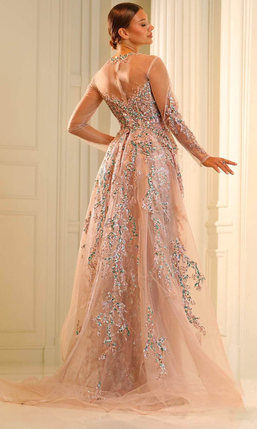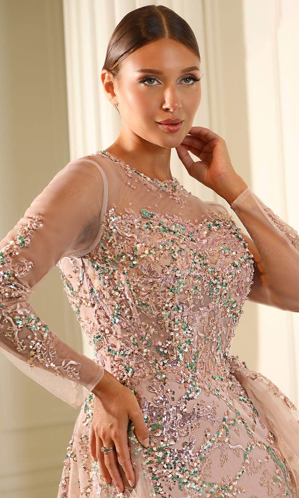 Exude a regal appeal in this Terani Couture 251M4412 gown, a timeless piece designed to enhance your elegance at any formal event. Meticulously crafted from luxurious beaded tulle fabric, this MOB offers an effortlessly refined look. The illusion neckline lends a soft, ethereal quality to the design, while the full-length sleeves provide a touch of understated elegance. With slit, the gown maintains a classic, graceful silhouette that flows seamlessly. The secure hook-and-eye and zipper closure at the back ensure the perfect fit, making this gown ideal for weddings, galas, and other grand events. Embrace the elegance and sophistication of this exquisite Terani Couture 251M4412 and make unforgettable memories at your next special occasion. Model is wearing Rose color.