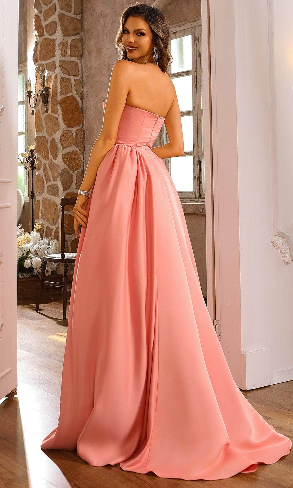 Let the Terani Couture 251P4066 masterpiece elevate your presence to royal heights. Fashioned from rich satin, the strapless gown displays a sweetheart neckline with pleated detailing and a seam-sculpted bodice for an attention-grabbing look. A discreet zipper closure at the mid-open back ensures the gown remains securely fitted. With gathered detail on both sides of the waist, the skirt attractively widens in a full-length A-line silhouette that flatters all women curves. This Terani Couture 251P4066 gown gives you a commanding red carpet-style glamour. Models are wearing Apricot, and Green colors.