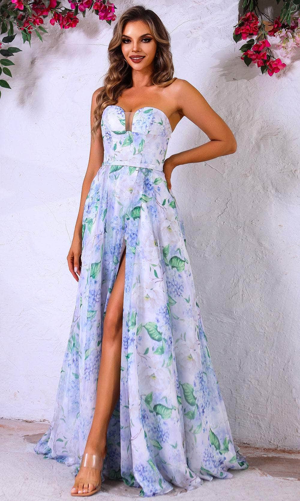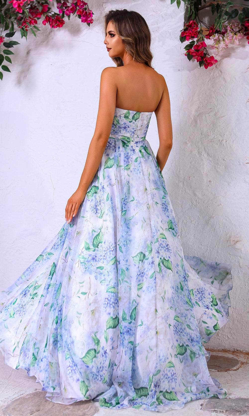 Make an unforgettable entrance in the dreamy Terani Couture 251P4142 gown. Crafted from soft printed chiffon, this A-line dress flows effortlessly with every step, revealing a slit and train that radiate elegance. The strapless sweetheart neckline highlights your natural beauty, adding romance to your look. Whether it’s prom night or a special celebration, this gown wraps you in charm and confidence. Shine brightly and let your style speak volumes in this exquisite piece by Terani Couture.