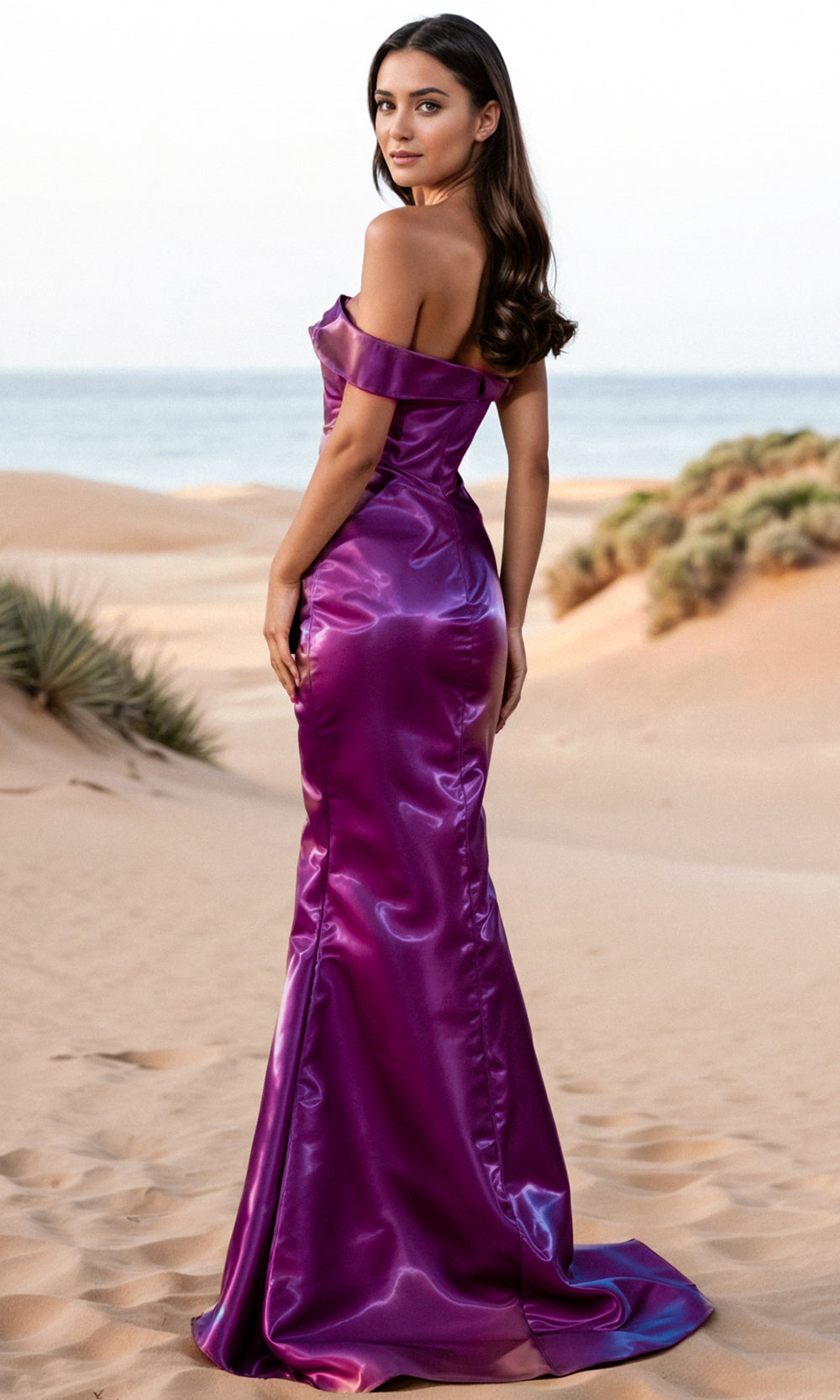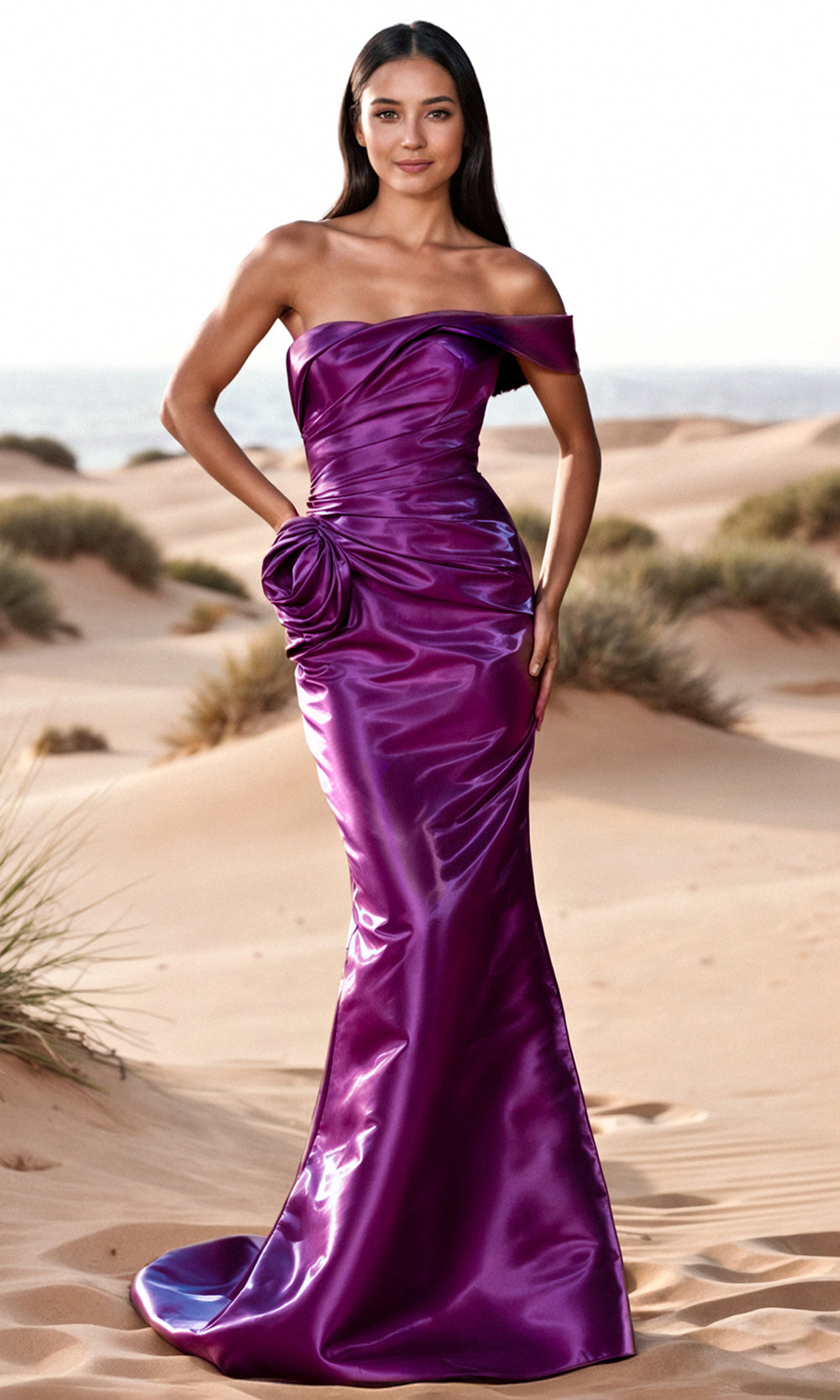 | Details: | Off Shoulder Cap Sleeve, Back Zipper, Rosette Accent, Ruched, Fitted |