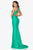 Enchants in a sleeveless, asymmetric neckline with fitted bodice styled with twisted ruching and an open back. The sheath skirt runs in full length hem and is styled with a high leg slit and a sweep train finish.