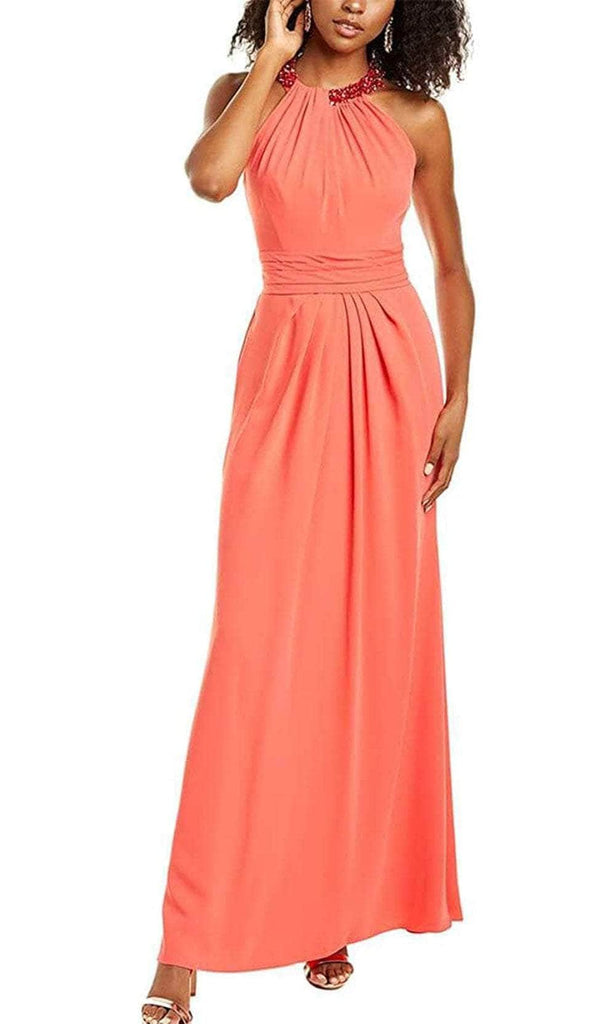Aspire to exude dominance among the crowd in this Theia 8812255. This dress features a halter neckline with beads and stones along the neckline, giving it a classic style. You'll like the soft ruching at he bust and waistband, and a full-length hem and a concealed back zipper complete the A-line skirt. Impress pure decadence in this beautifully adorned Theia. Couture Candy is committed to provide the very best when it comes to dresses for every occasion, and we are delighted to have Theia on our side to aid us in delivering exquisite dresses for various occasions that are sure to make heads turn. Model is wearing Coral color.