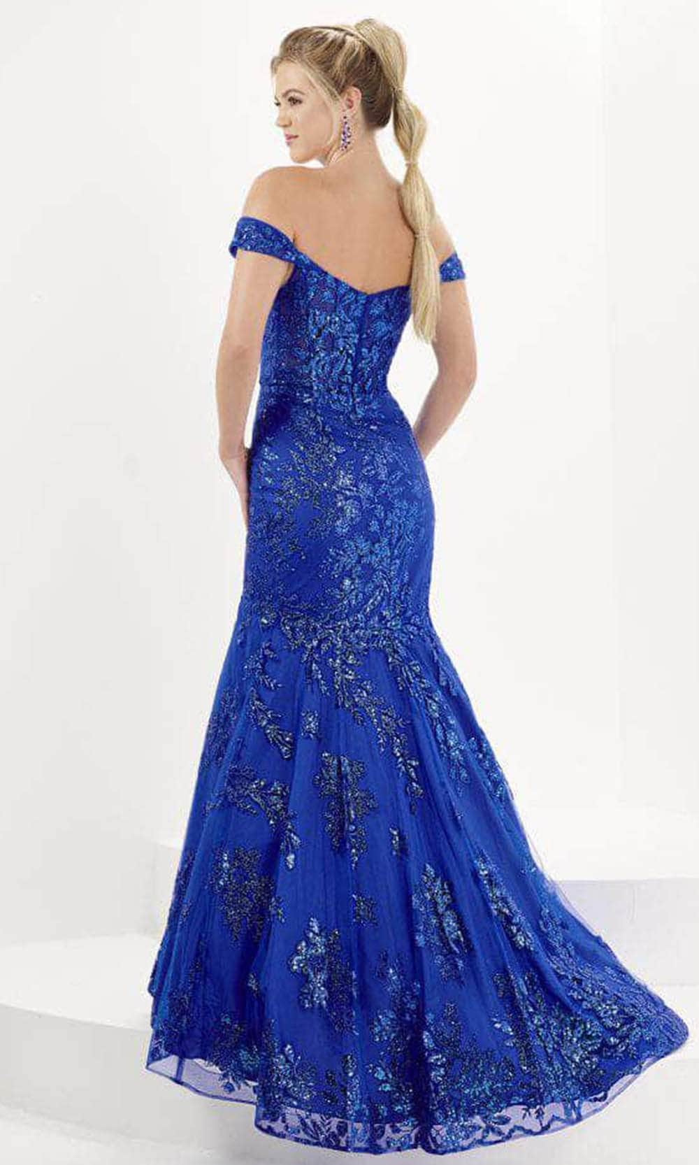 Feel divine in a heavenly creation from Tiffany Designs 16080. Expertly embellished with a floral motif of beading and scintillating sequins, this gown exudes a timeless luxury. The illusion corset bodice displays a visible boning, complemented with an off-shoulder plunging sweetheart neckline and cap sleeves. With its alluring mid-open style, the back gives a peek of skin. The mermaid skirt draws attention to your curves and it ends with a graceful sweep train trailing behind. This trendsetting Tiffany Designs 16080 gown is sure to get you noticed. Models are wearing the Royal, Hunter Green, and Sage colors.