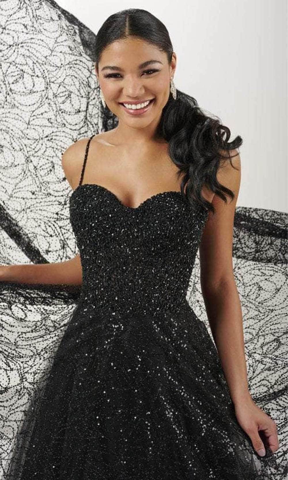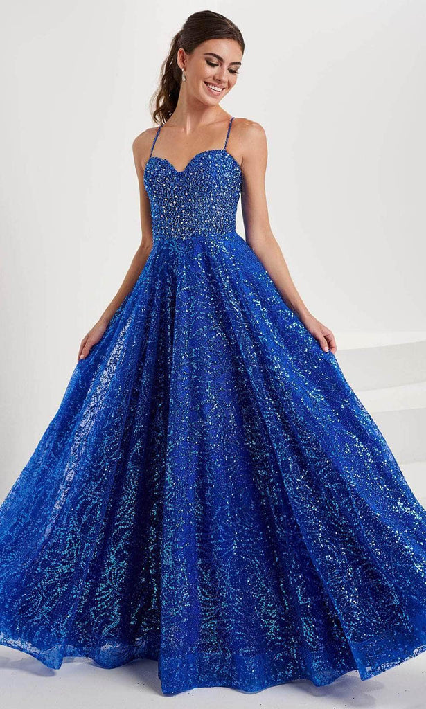 Steal the show in this mesmerizingly feminine Tiffany Designs 16088 masterpiece. From top to bottom, this sleeveless gown is radiantly encrusted with a blend of intricate beadworks and sequins. Featuring delicate spaghetti straps and sweetheart neckline as well as a low cut open back. It also has a center back zipper closure to guarantees a secure fit. The sparkle tulle skirt effortlessly glides to the floor in a superb ballgown silhouette, completed with an ethereal sweeping train and horsehair hemline. Fall in love when you slip on this Tiffany Designs 16088 gown. Models are wearing the Royal, and Black colors.