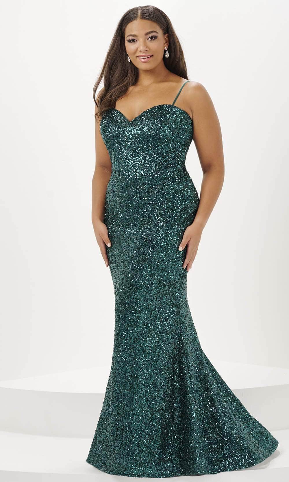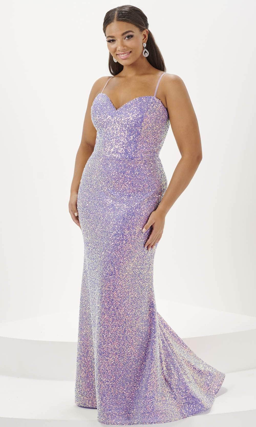 Be the center of attention in this fashionable Tiffany Designs 16121 dress. The sleeveless style is fully hand-sewn with shimmering sequins, ensuring that you glisten all night long. It displays thin straps that delicately grace your shoulders, a sweetheart neckline and a mid-open detail at the back. Effortlessly accentuating your curves with a mermaid silhouette, the skirt flows to the floor and extends into a sweeping train. Join us in celebrating your beauty in a classy creation from Tiffany Designs 16121. Models are wearing the AB White, Emerald, Lavender, and Red colors.