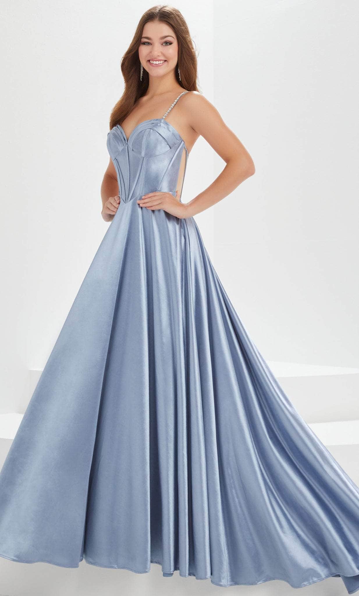 Orchestrate a spectacular evening of dazzling sophistication in this luxurious Tiffany Designs by Christina Wu 16014 prom dress. Structured with corset boning on a fitted bodice, this stunner is gorgeously tailored on a smooth fabric. Featuring a sweetheart neckline held by beaded spaghetti straps holding the bodice and revealing an illusion open-back. From your natural waistline, the A-line silhouette of the skirt cascades to a sweeping train. Embrace a style that is immaculately sultry as you glam up for your event in this Tiffany Designs by Christina Wu 16014 creation. Models are wearing Black, Blush, and Haze Blue colors.