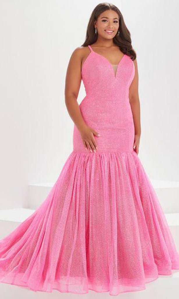 Show up in this House of Wu 16047 with the perfect amount of glitz and glamour. Make your grand entrance as you wear this glittery dress with a sleeveless V-neckline, a mesh insert at the bust, an open back, and a back zipper closure while the mermaid skirt cascades down to the floor. You are sure to be the life of the party when you are wearing this dazzling House of Wu 16047 creation. Models are wearing Evergreen and Hot Pink colors.