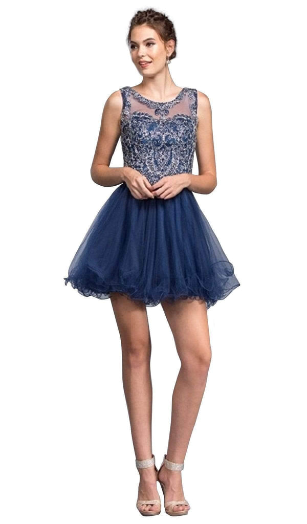 Trevi Collection - Beaded Illusion Jewel Homecoming A-line Dress