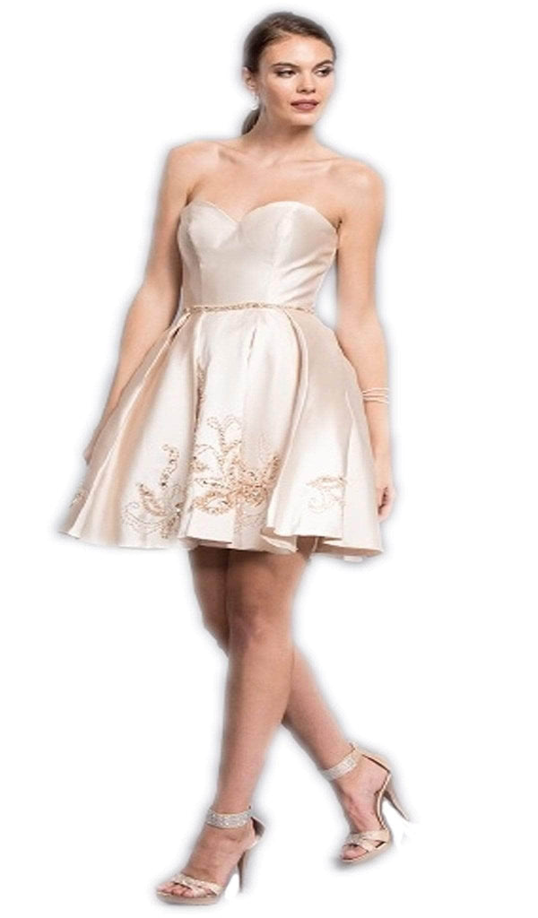 Trevi Collection S1913 is a charming choice for your next special occasion. This strapless dress brandishes in a sweetheart neckline with waist detailed with bead embellishments. The skirt flourishes in an A-line skirt and is adorned with glittering embellishments. You are a breath of fresh air in this dreamy Trevi Collection dress.