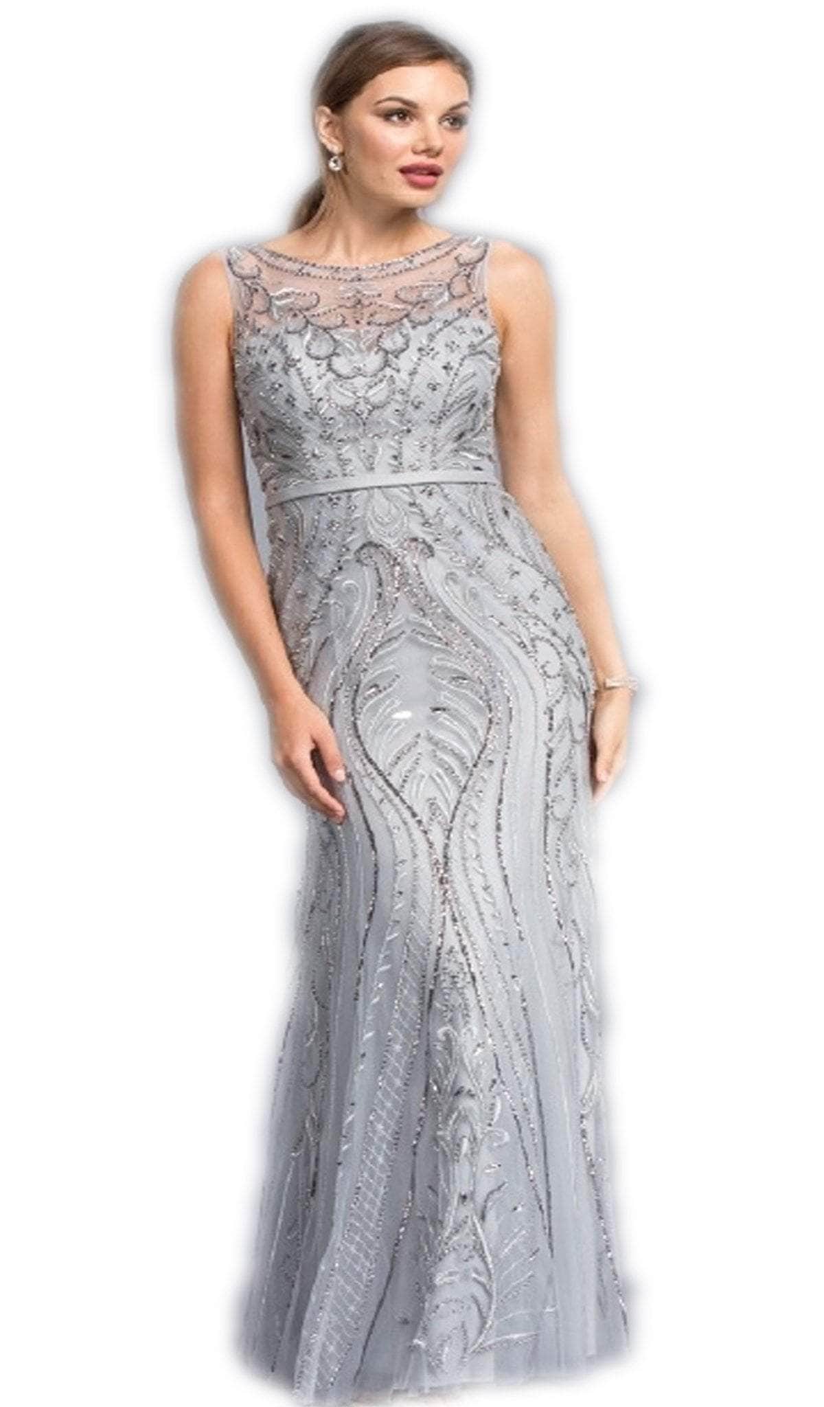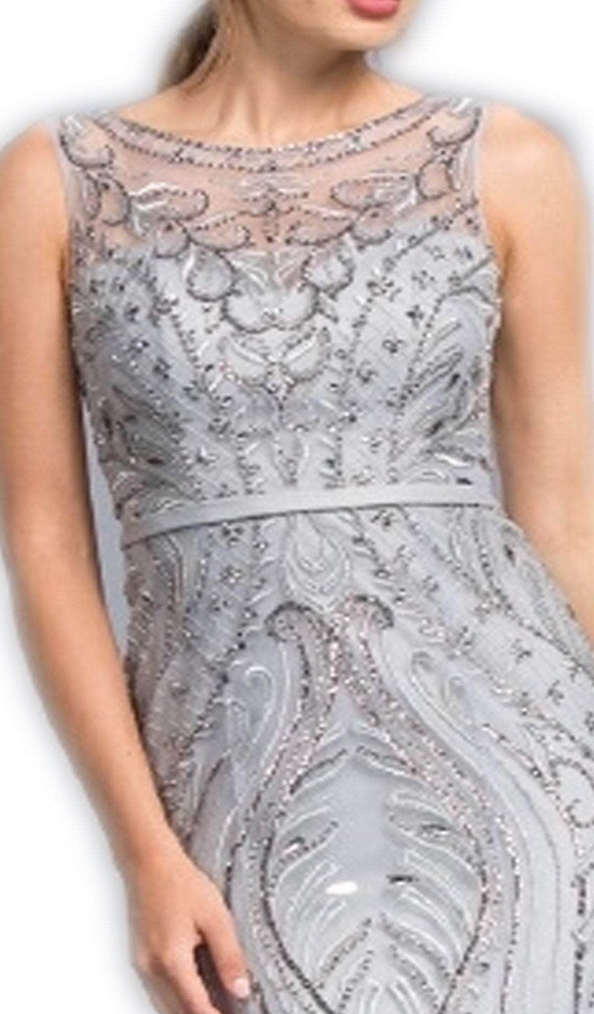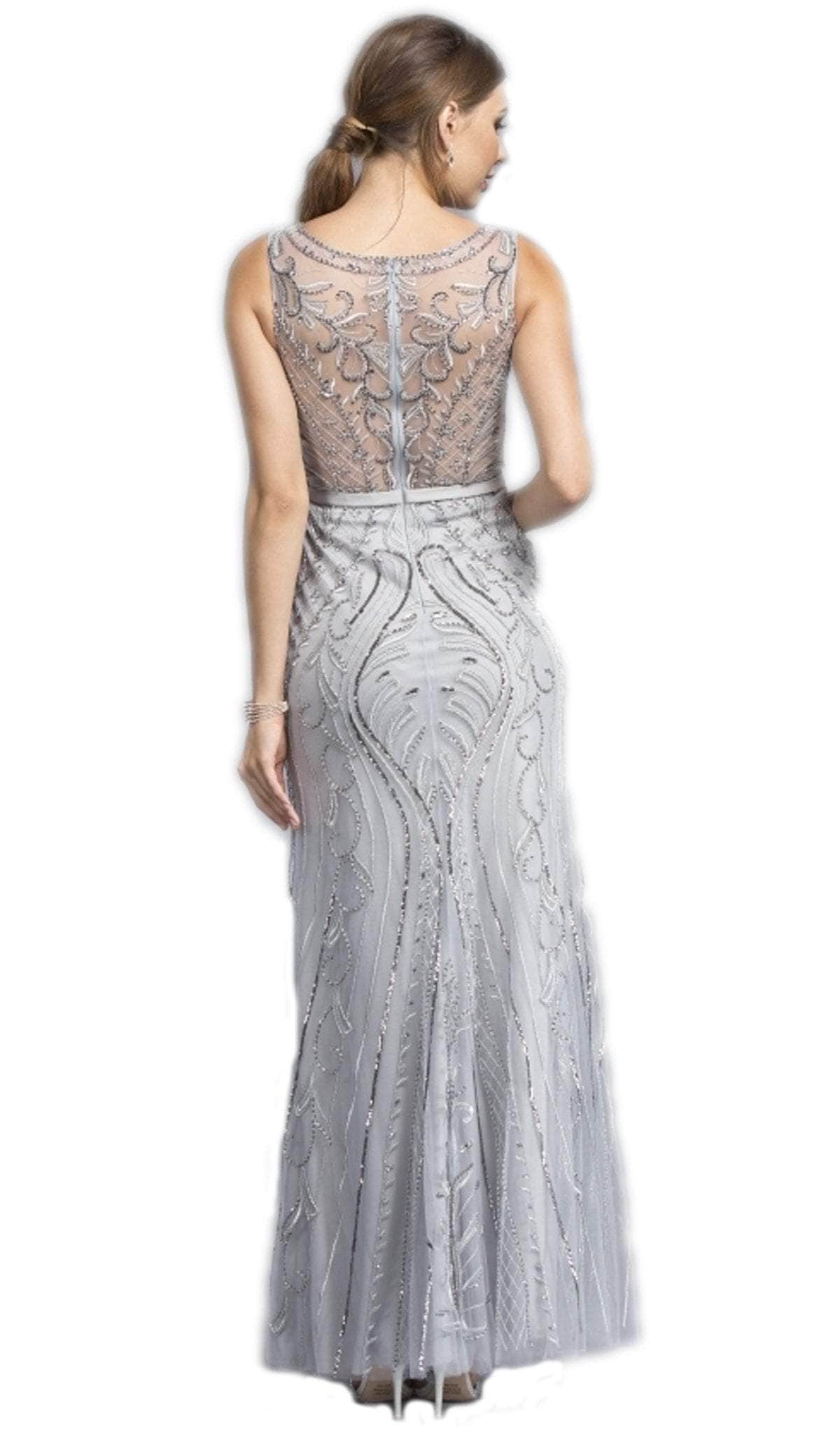 Get noticed in this radiant dress from Trevi Collection L1997. Graces in a sleeveless, illusion bateau neckline with sheer sweetheart lined bodice adorned with embellishments throughout the skirt. The waist is wrapped in a thin band while the skirt highlights your curves with its fitted silhouette. Bloom with beauty and love as you saunter in this Trevi Collection masterpiece. Model is wearing Silver color.