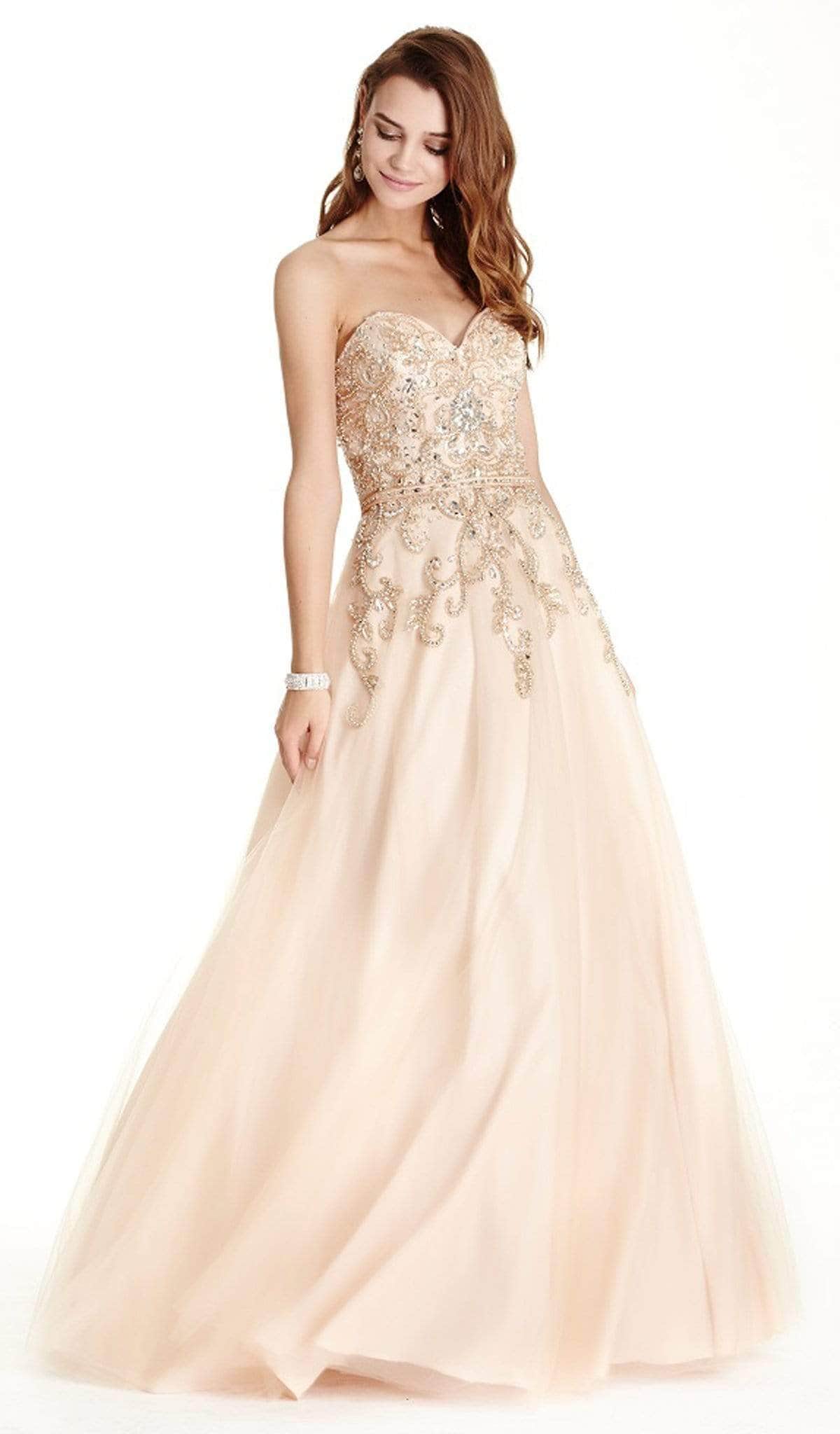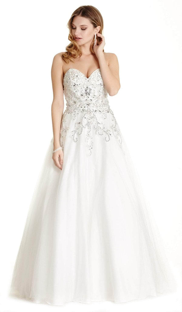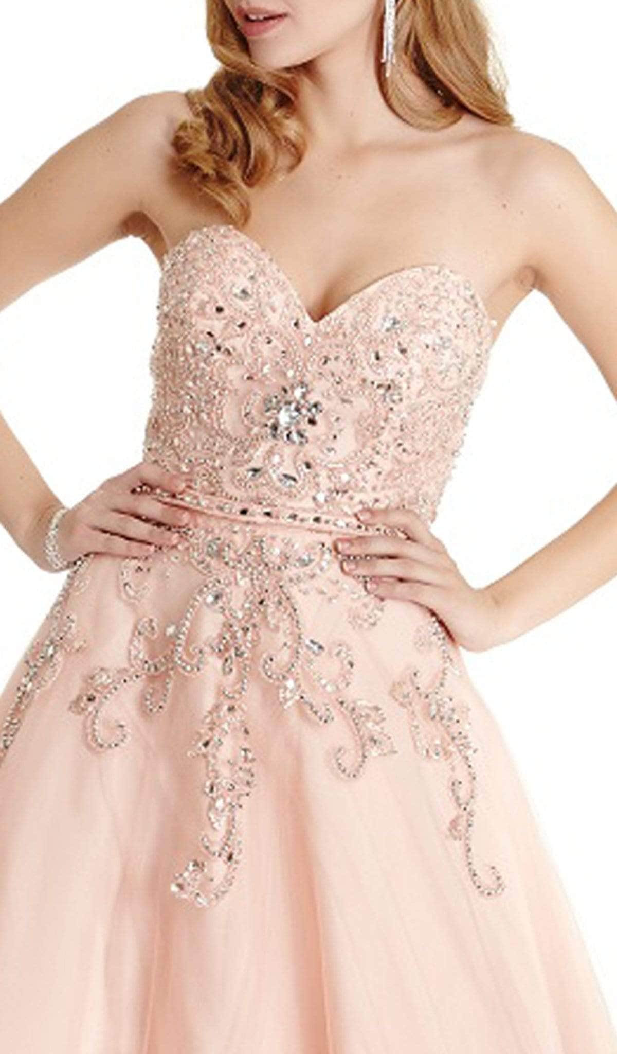 You’re sure to stand our when you wear this strapless gown from Trevi Collection L1673. Glams with a sweetheart neckline with fitted bodice lavishly adorned with embellishments and jewel accents. The back has a lace up closure while the skirt opens in a ballgown silhouette. This Trevi Collection creation is simply captivating!