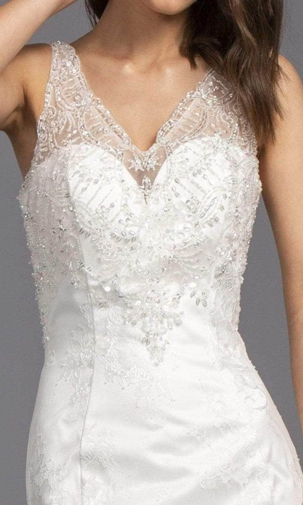 Trevi Collection Bridal L2145 wedding dress is perfect for the bride who wants a romantic, ethereal look for her wedding day. This stunning bridal dress parades a v-neck illusion sweetheart neckline. The dress has an gorgeous embellishment and a floral applique design. It is fitted bodice that can show your great shape. It is a floor length and a sweep train gown. Every walk you make will leave a statement. The back has a low -v-back with an illusion for a daring look. It has a back zipper for security. Trevi Collection Bridal wedding dress perfect for the bride who wants a romantic, ethereal look for her wedding day.