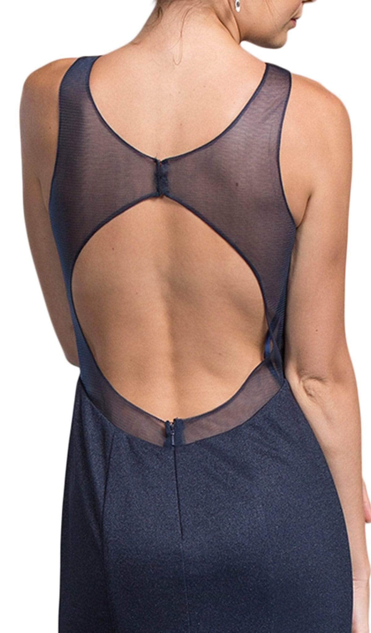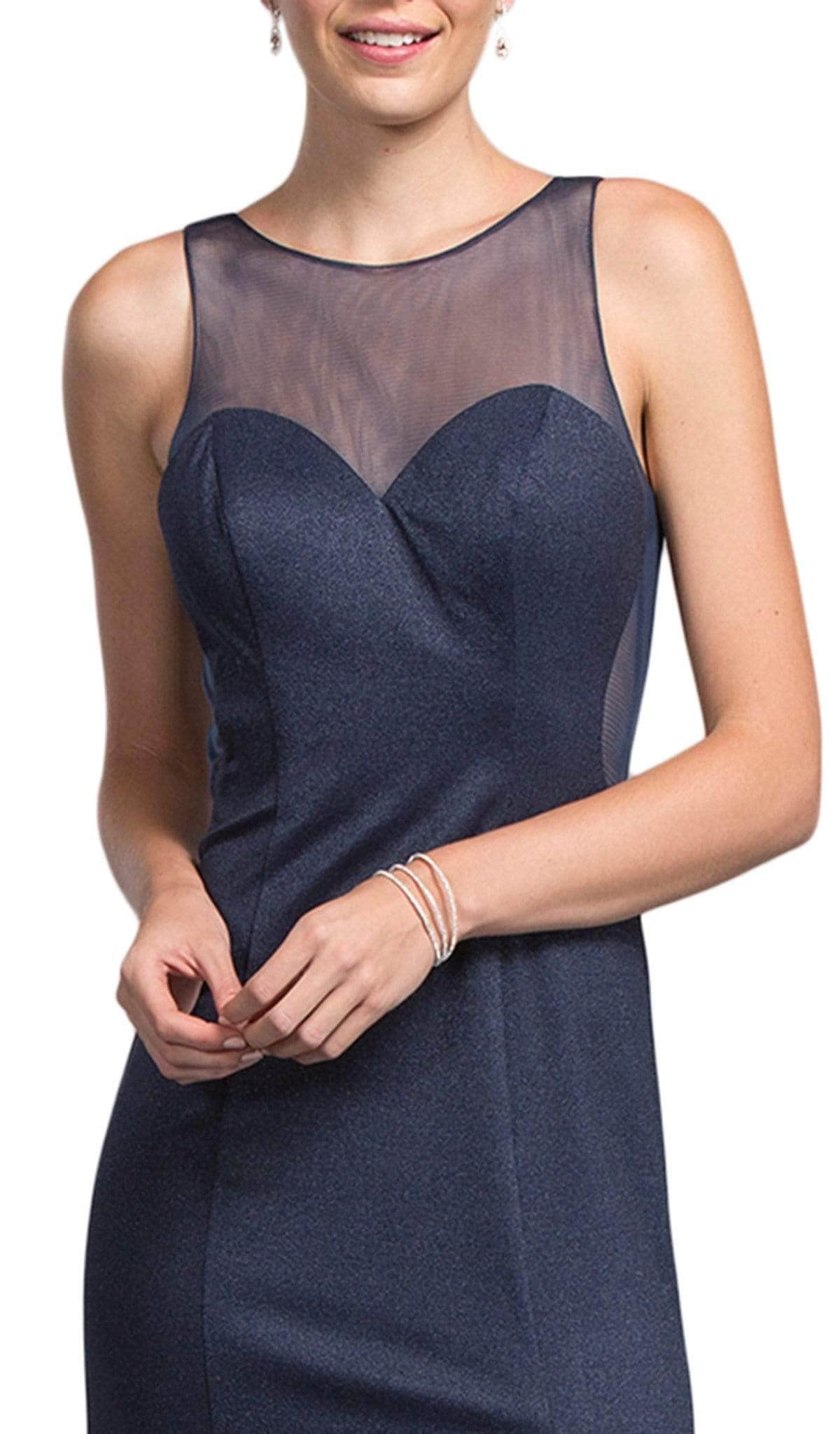Sizzle all night in this fabulous dress from Trevi Collection L2023. Graces in a sleeveless, illusion bateau neckline with fitted bodice designed with sweetheart lining. The back shows an open detail while the skirt begins from the waist and flourishes in a fitted silhouette with sweep train finish. Class and sophistication are achieved in this sleek design by Trevi Collection. Model is wearing Navy color.