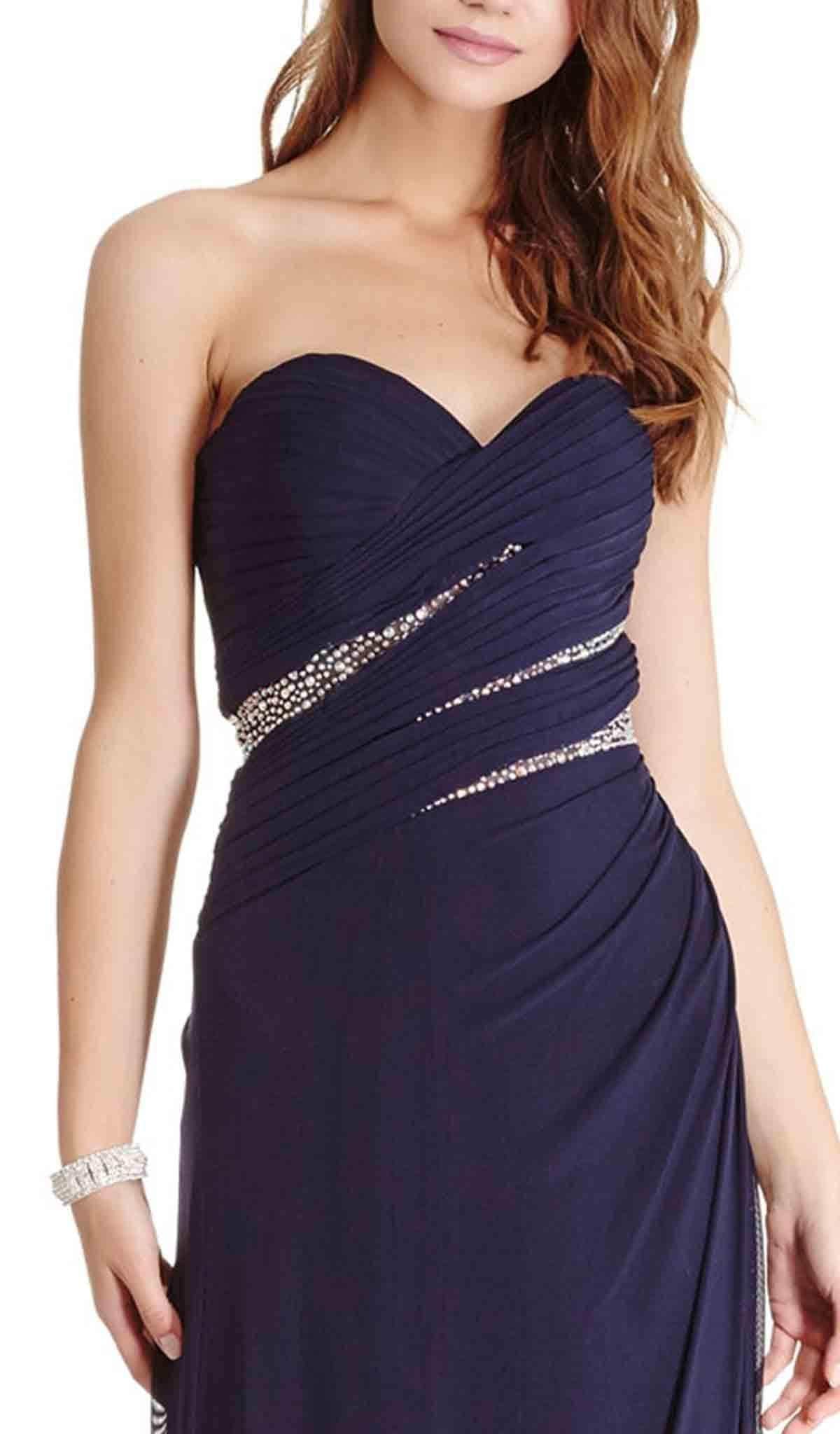 This enchanting Trevi Collection L1714 is sure to make you the center of everyone's attention. Presents in a strapless, sweetheart neckline with fitted bodice diagonally pleated and decked with embellishments. From the natural waist flourishes a full length sheath skirt. This Trevi Collection creation is truly remarkable!