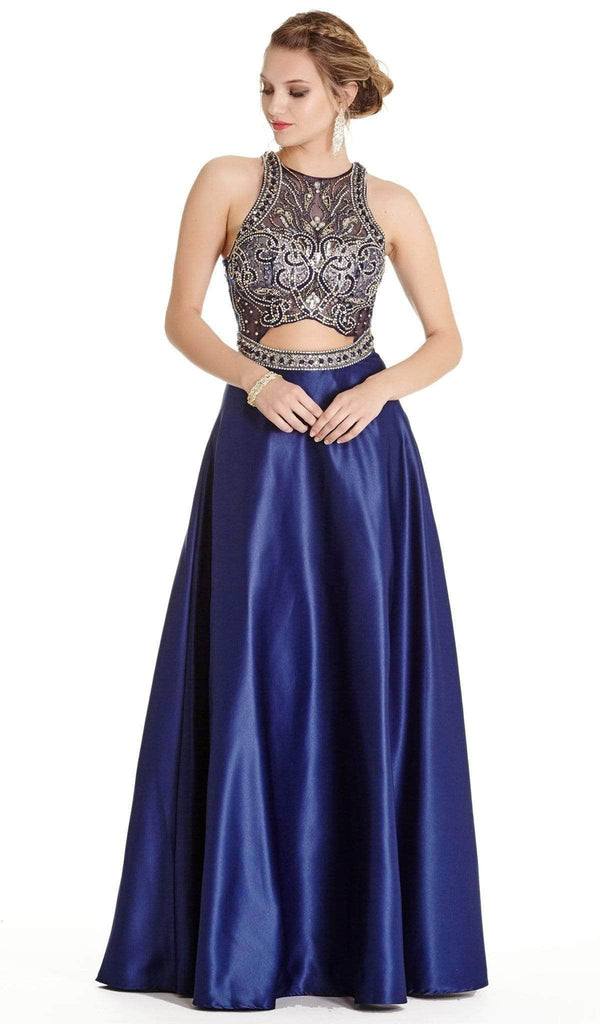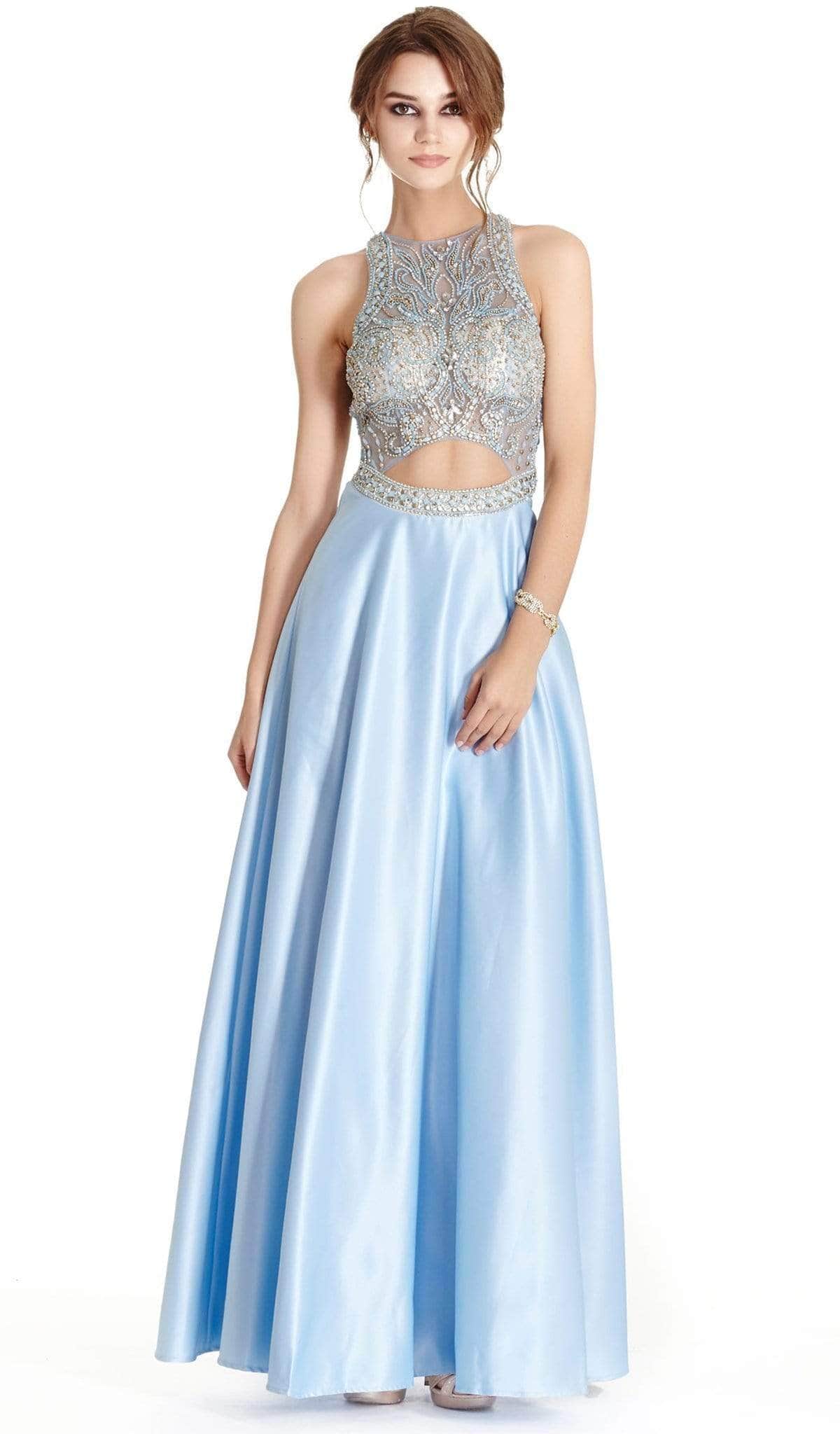 Bring that commanding beauty when you wear this ballgown from Trevi Collection L1731. Features a sleeveless, halter neckline with fitted bodice lavishly decorated with embellishments and styles with front and back cutouts. From the natural waist flourishes a full length hem ballgown skirt. What an outstanding choice for prom, easy to dance in and you get to look like a princess in this Trevi Collection gown.