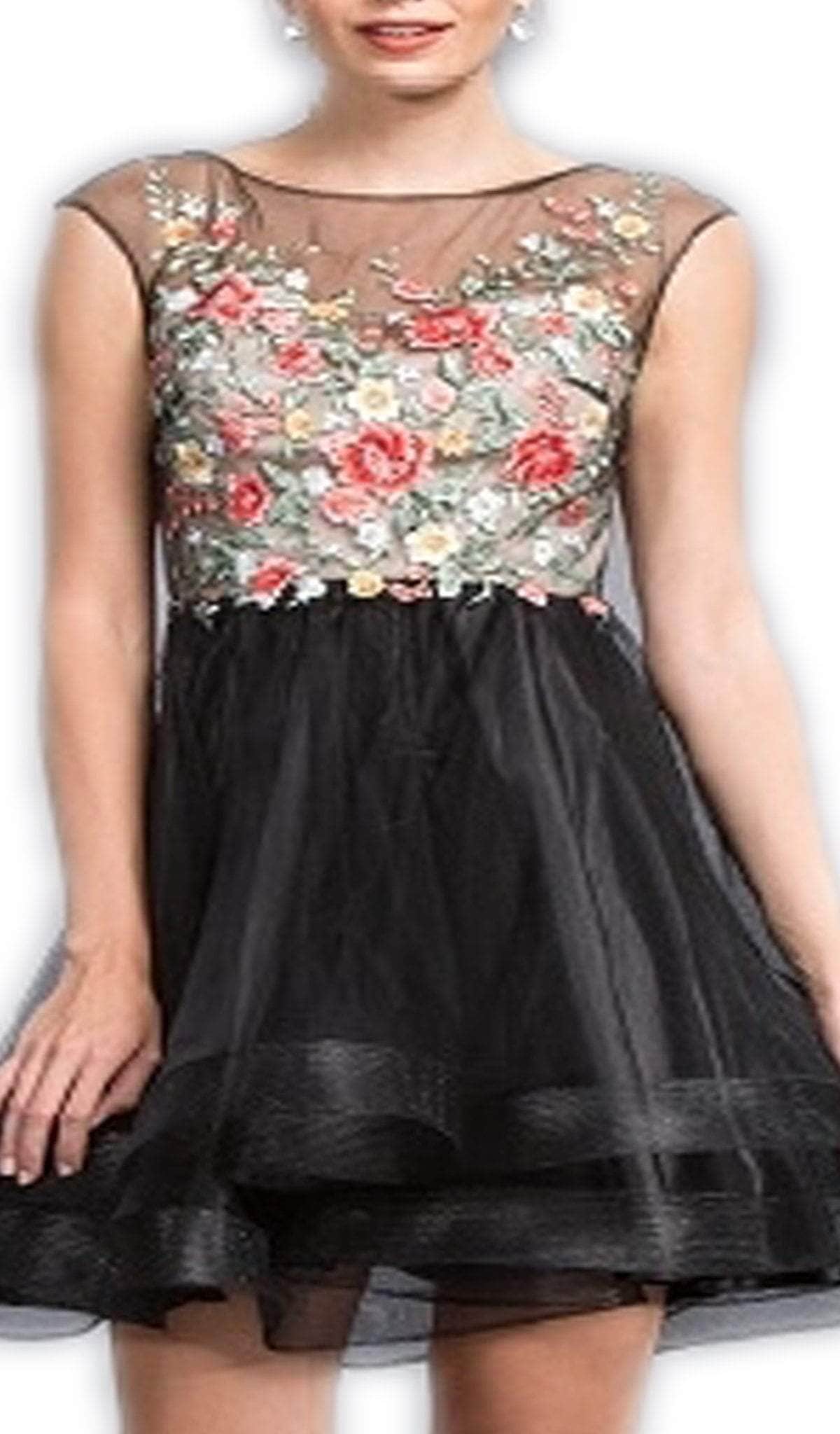 Look lovely in this elegant dress from Trevi Collection S1922. Graces in an illusion bateau neckline with cap sleeves. The fitted bodice is bedecked with lavish floral embroidery. The back has a zipper closure while the short A-line skirt is designed with horsehair hemline. Fall in love when you slip on this Trevi Collection dress.