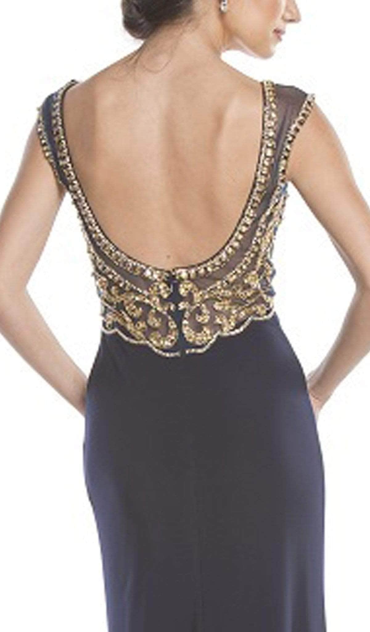 Trevi Collection - Gold Embellished Evening Dress with Slit