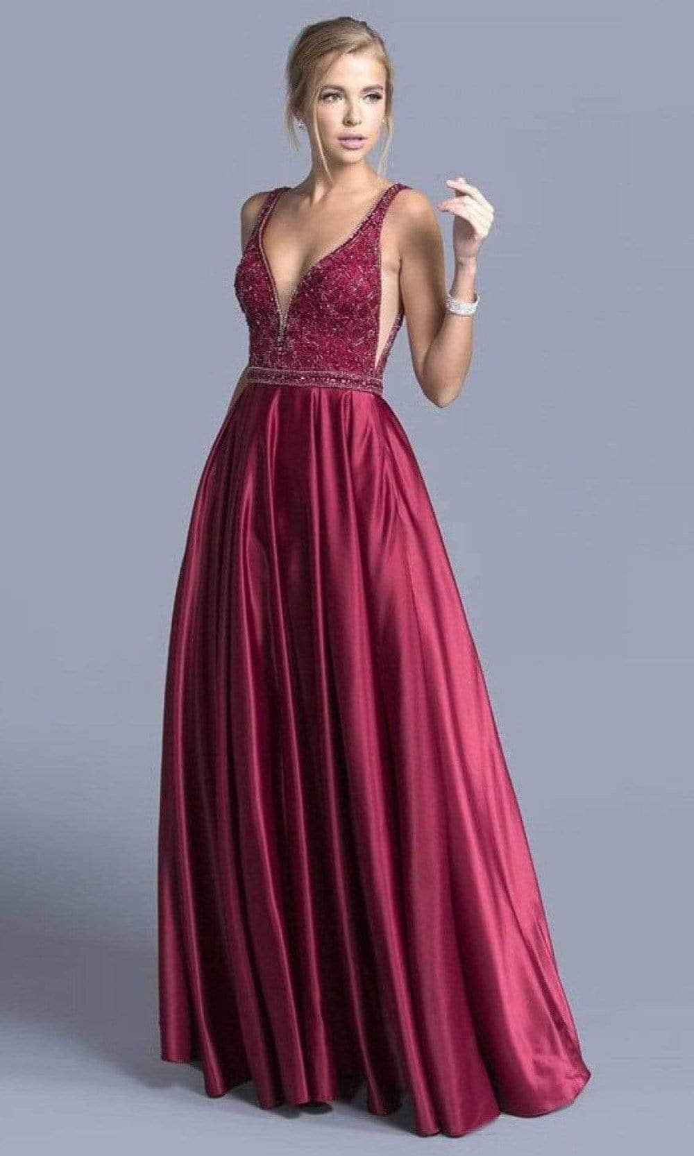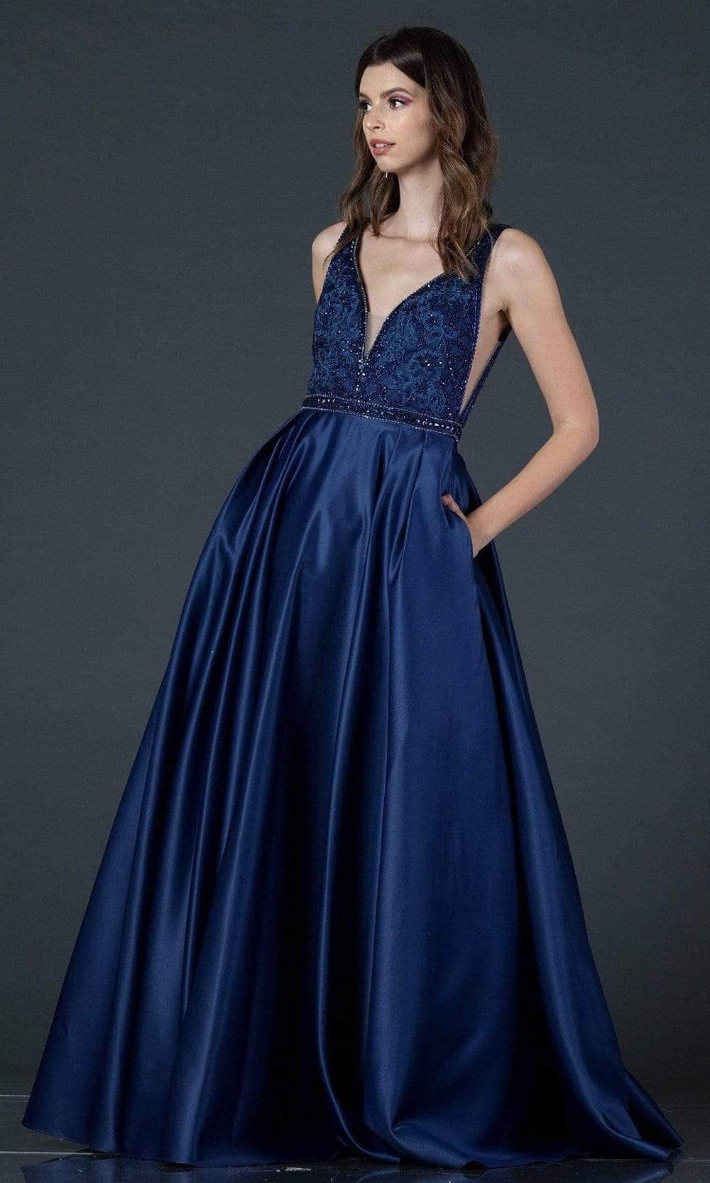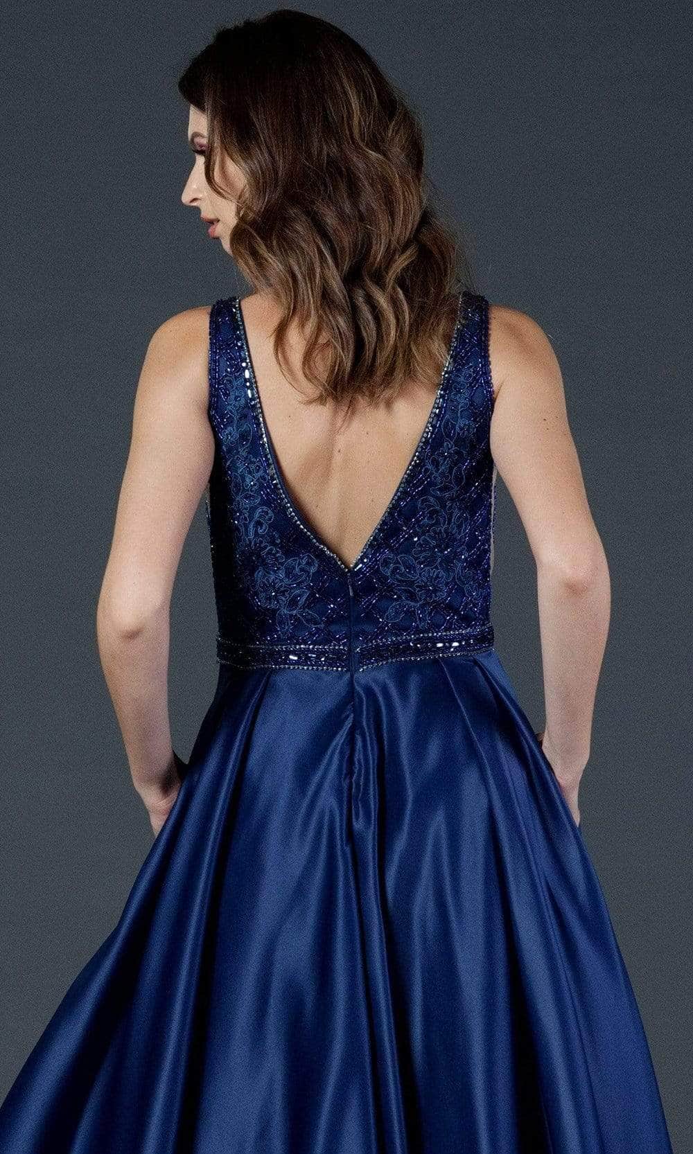 You will be an enchanting beauty in Trevi Collection L2001. Makes a statement in a sleeveless, deep V neckline with sheer insets. The embroidered bodice is styled with a V-back and from the waist flourishes a full length A-line skirt with pockets. This Trevi Collection creation is simply breathtaking!
