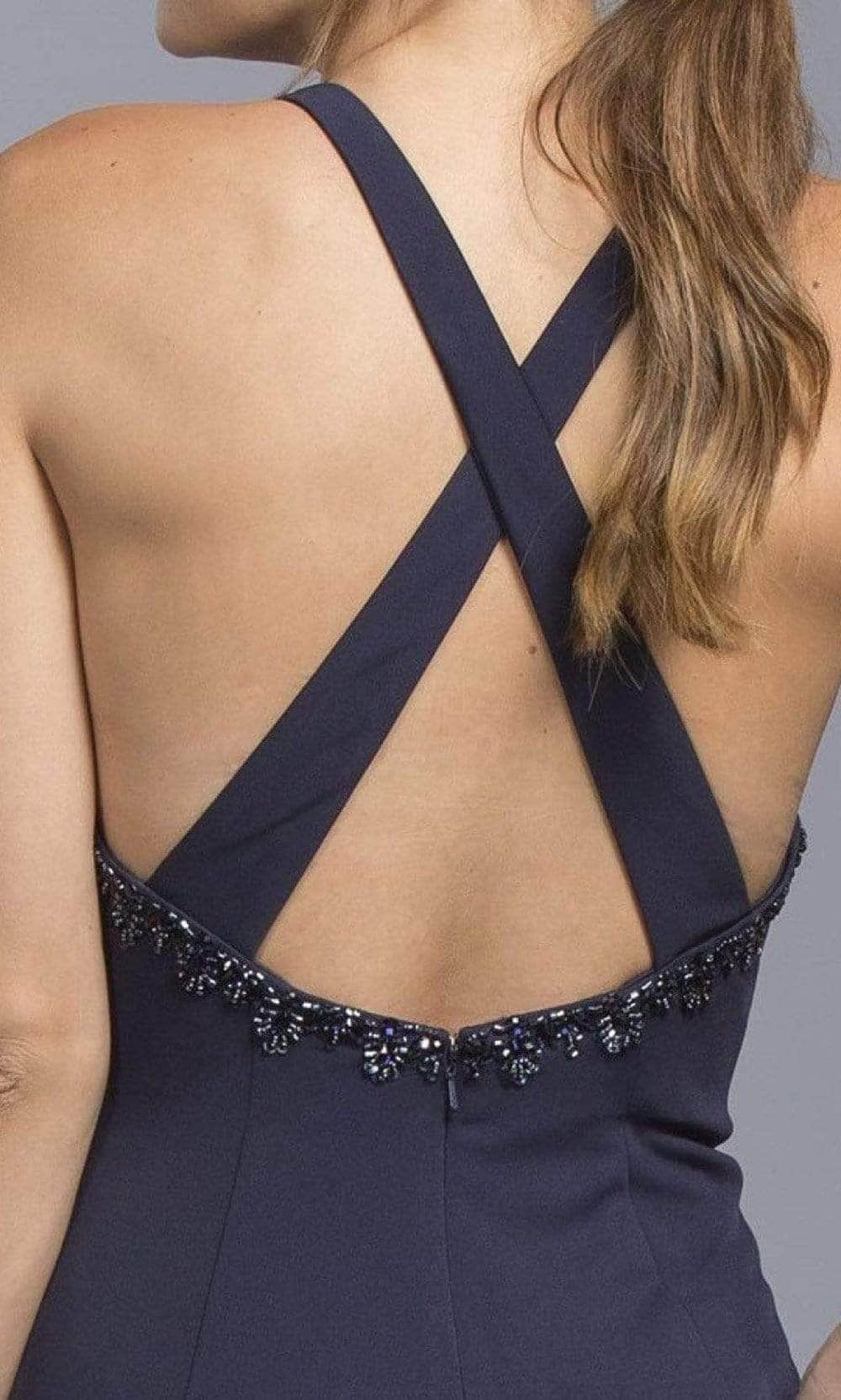 Trevi Collection - L2017 Bead-Trimmed Crisscross Back Dress
