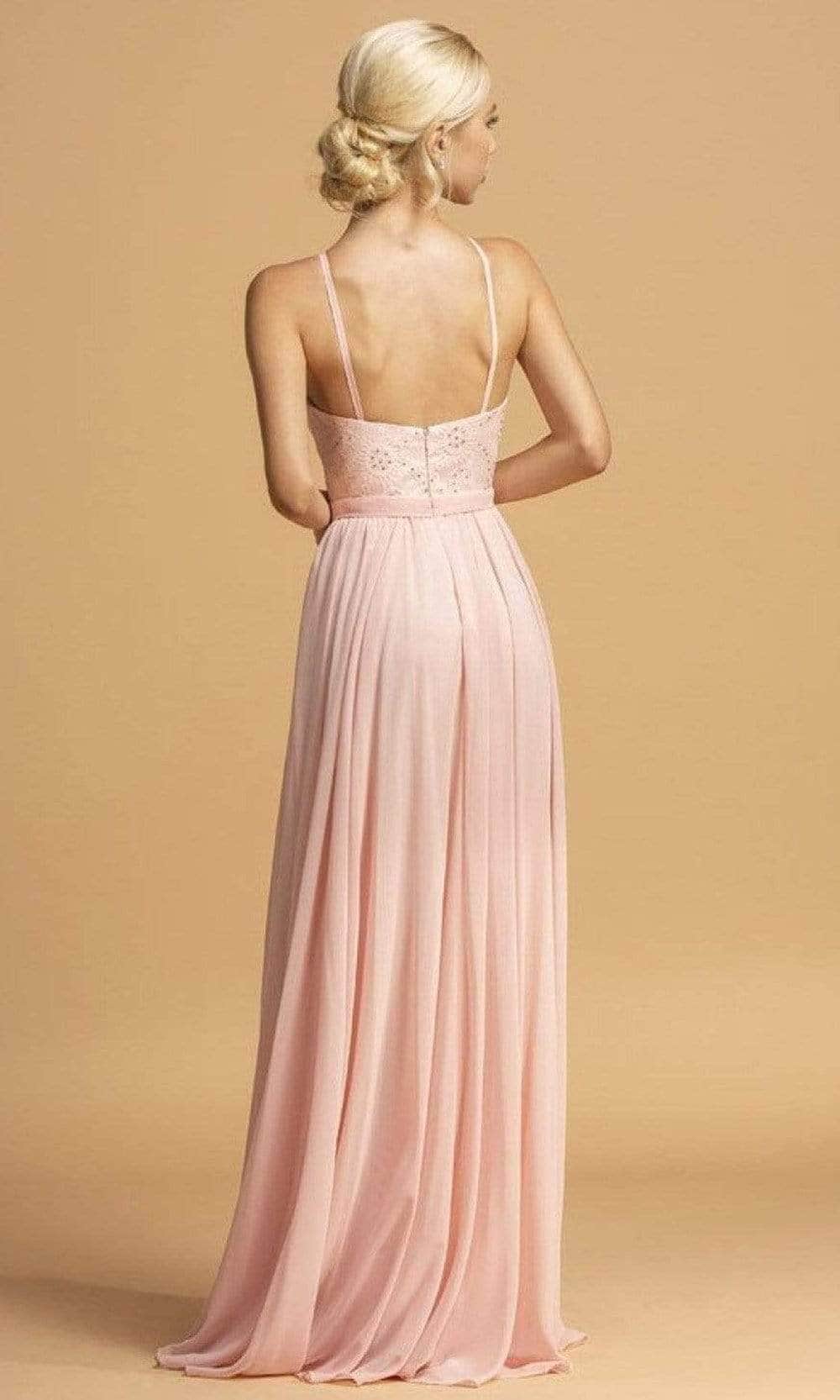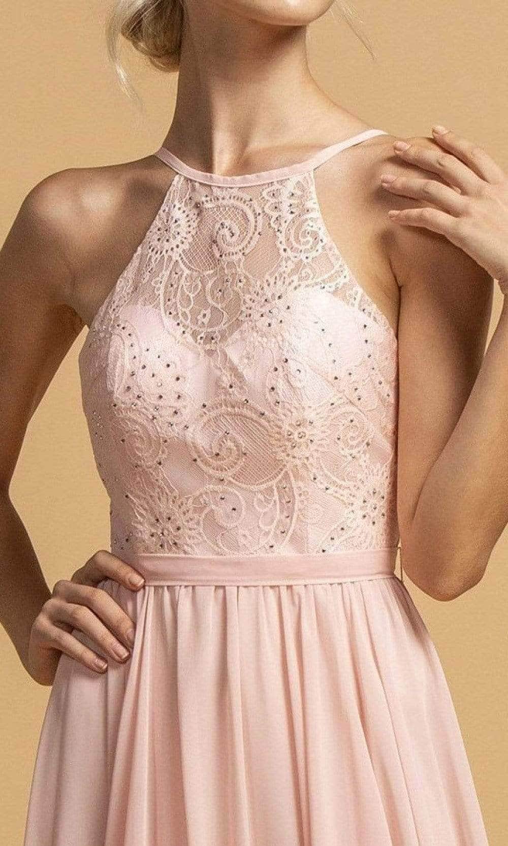 Traditional style gets a glam twist in a sophisticated dress from Trevi Collection L2105. This chiffon/lace gown enchants in a sleeveless, halter neckline with a fitted bodice. The skirt fashions a full length A-line silhouette. Get glam in this fabulous dress from Trevi Collection.