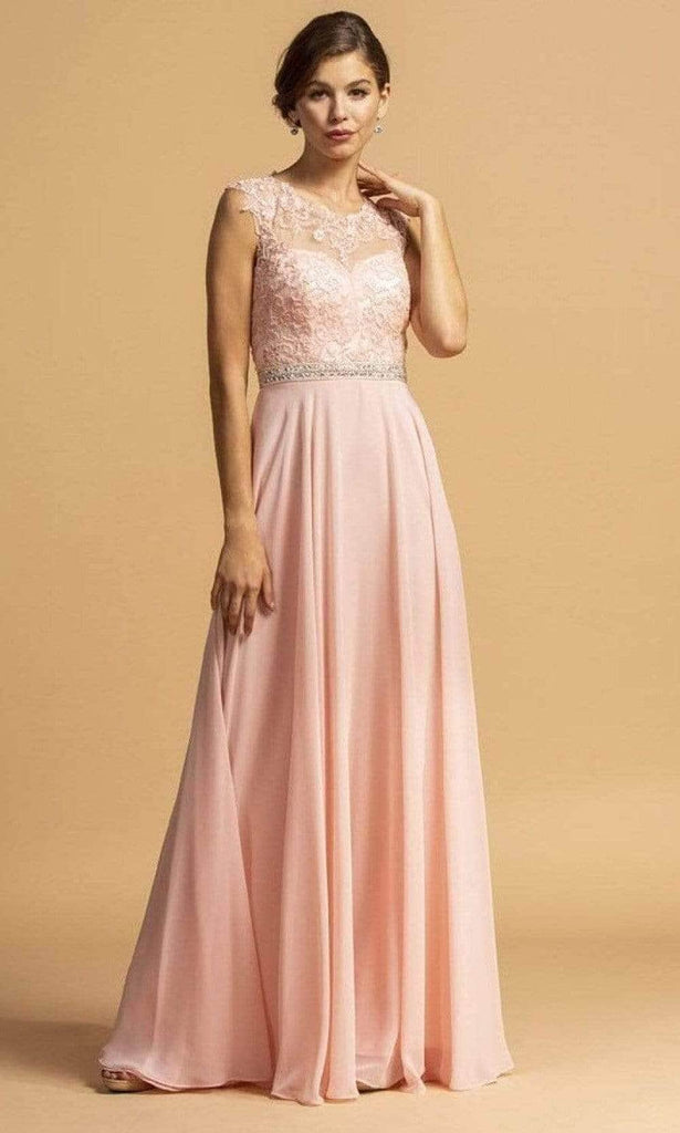 Glamour up with sophistication in this Trevi Collection L2222 creation. Embroidered with lace details, this cap sleeve dress features a jewel neckline with a cutout back. Embellished with beadwork along the waist, the chiffon skirt streams to the floor with a train. Parade a dreamy appeal in this Trevi Collection masterpiece. Model is wearing the Blush color.