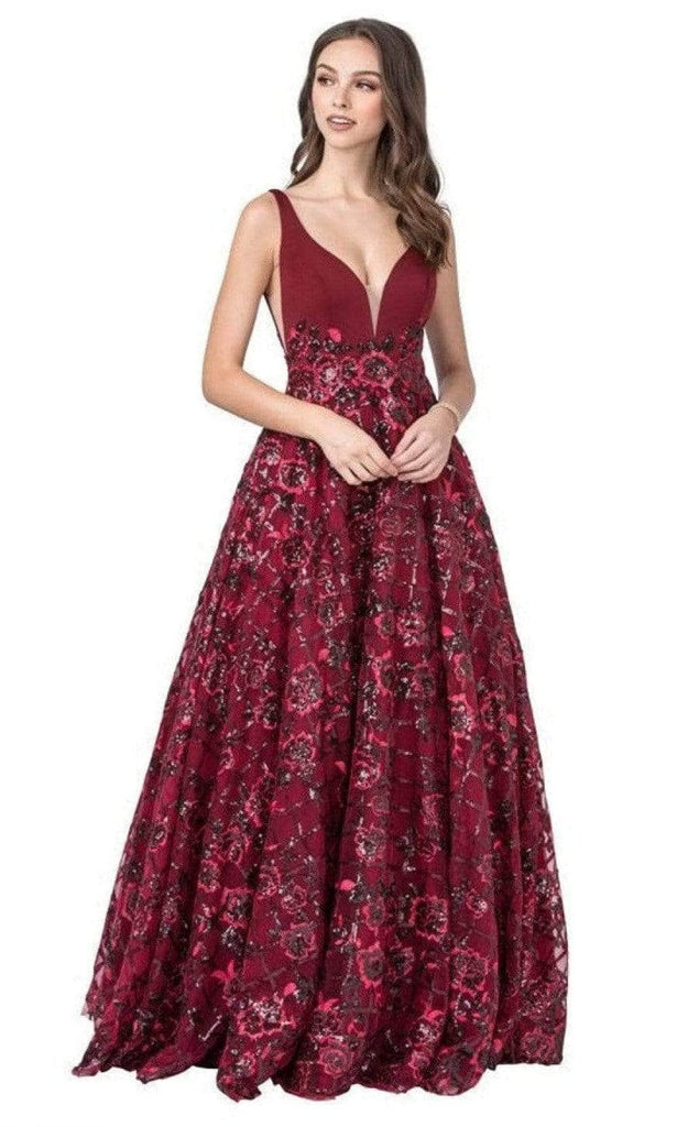 Exude that vibrant personality in this ravishing look from Trevi Collection L2237. This gorgeous gown charms in a sleeveless, deep V neckline with fitted bodice and sheer insets. The dress is made of chiffon, lace, and sparking embellishments. It has a V back and a zipper closure. The skirt is tailored in a full length A-line silhouette. Feel dainty and feminine in this enchantingly designed Trevi Collection gown.