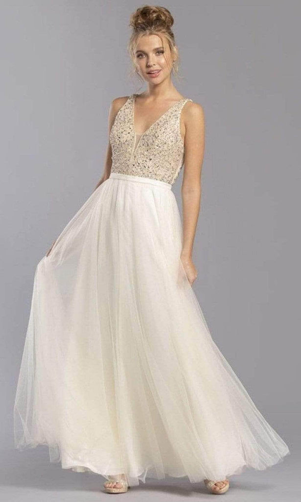 Be fabulous in Trevi Collection L2247 evening dress. This dress showcases a plunging V-neckline in a beaded bodice. Revealing an A-line silhouette, this also shows a V back with back zipper closure. Be ready to fascinate everyone with Trevi Collection creation.