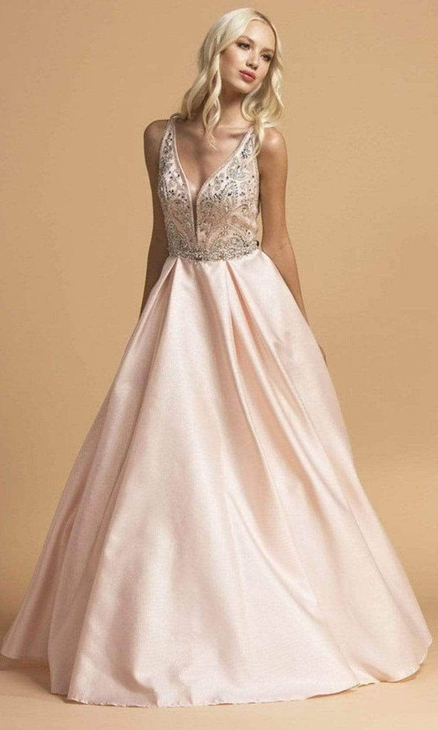 Be adored by the fascinating crowd in this Trevi Collection L2261 creation. Tailored in a sleek satin silhouette, this stylish piece reveals a plunging v-neckline with a sheer inset. Beadwork ornate the bodice and a jeweled cutout back. The shiny skirt streams to the floor. Capture everyone’s attention in this Trevi Collection masterpiece.