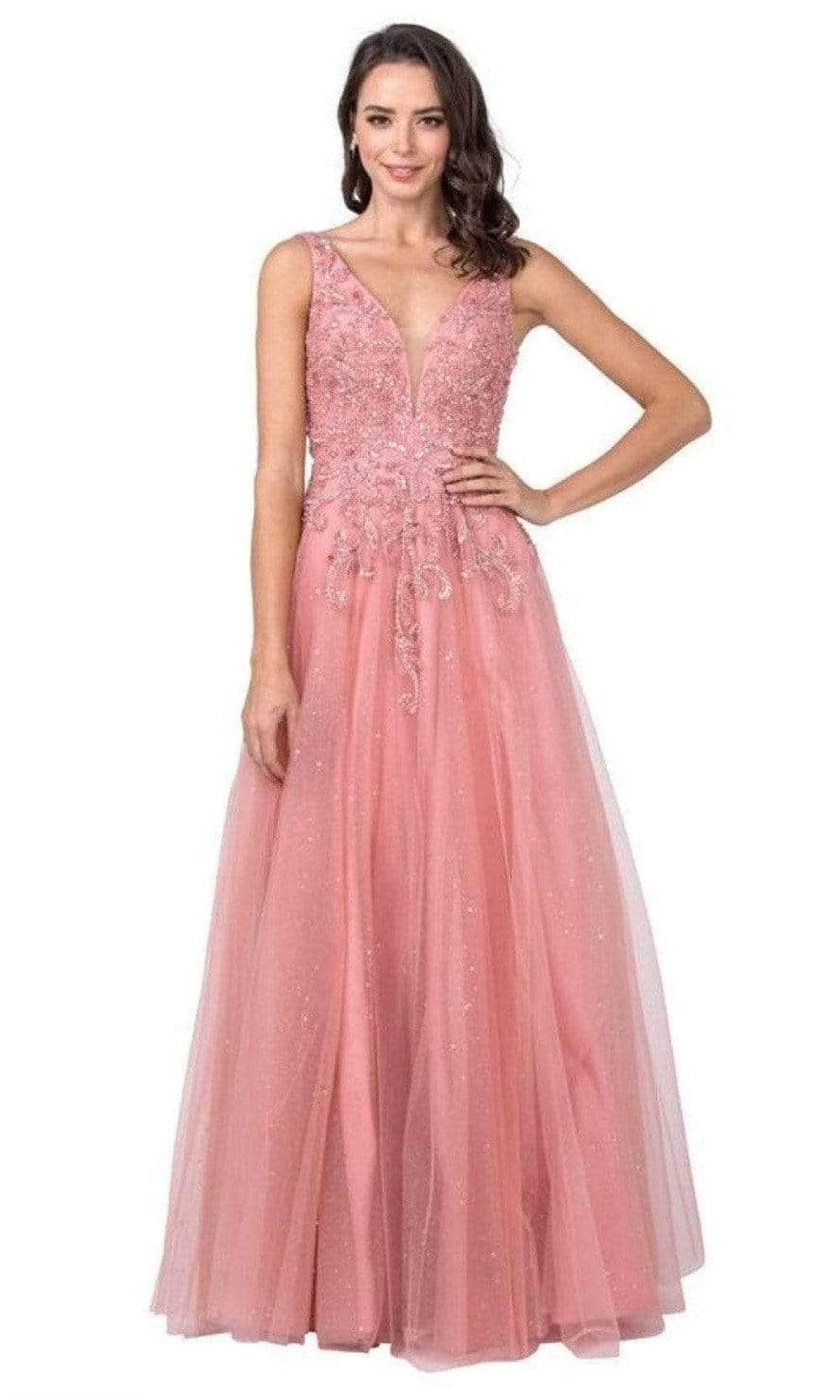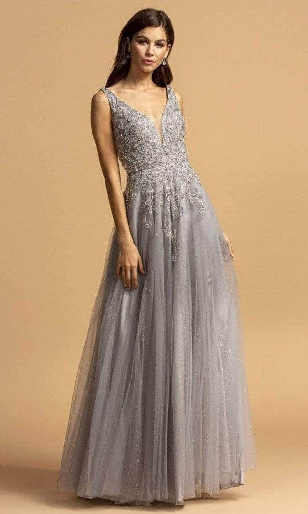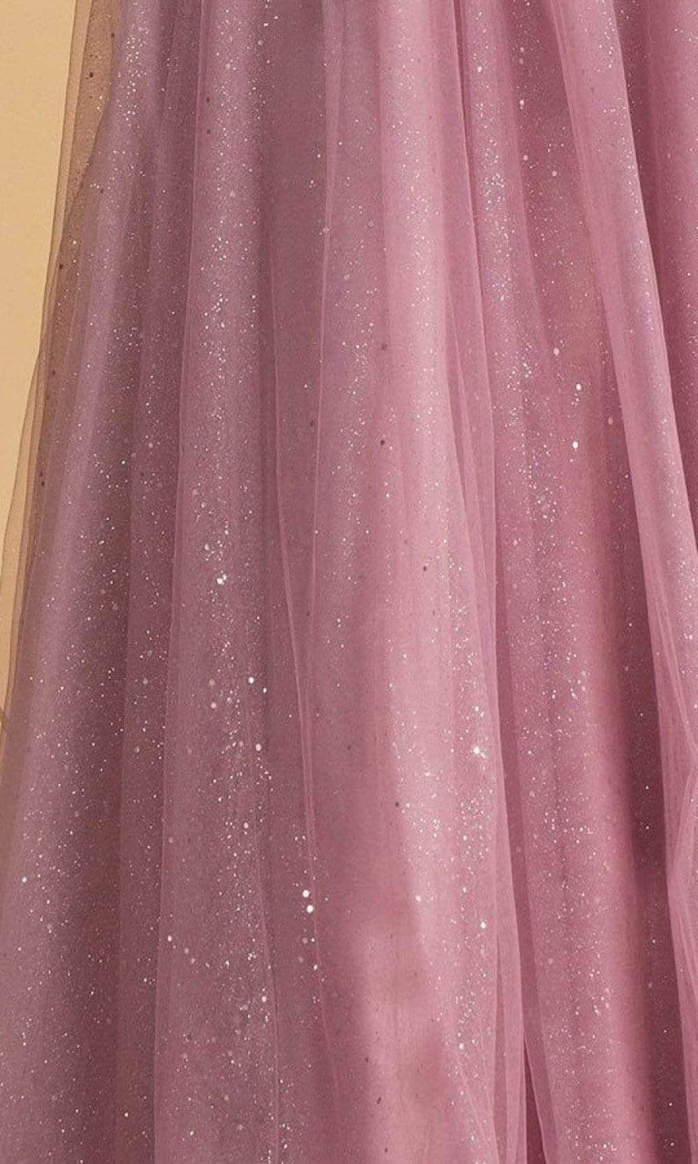 Trevi Collection - L2263 Beaded Glitter Tulle A-Line Dress