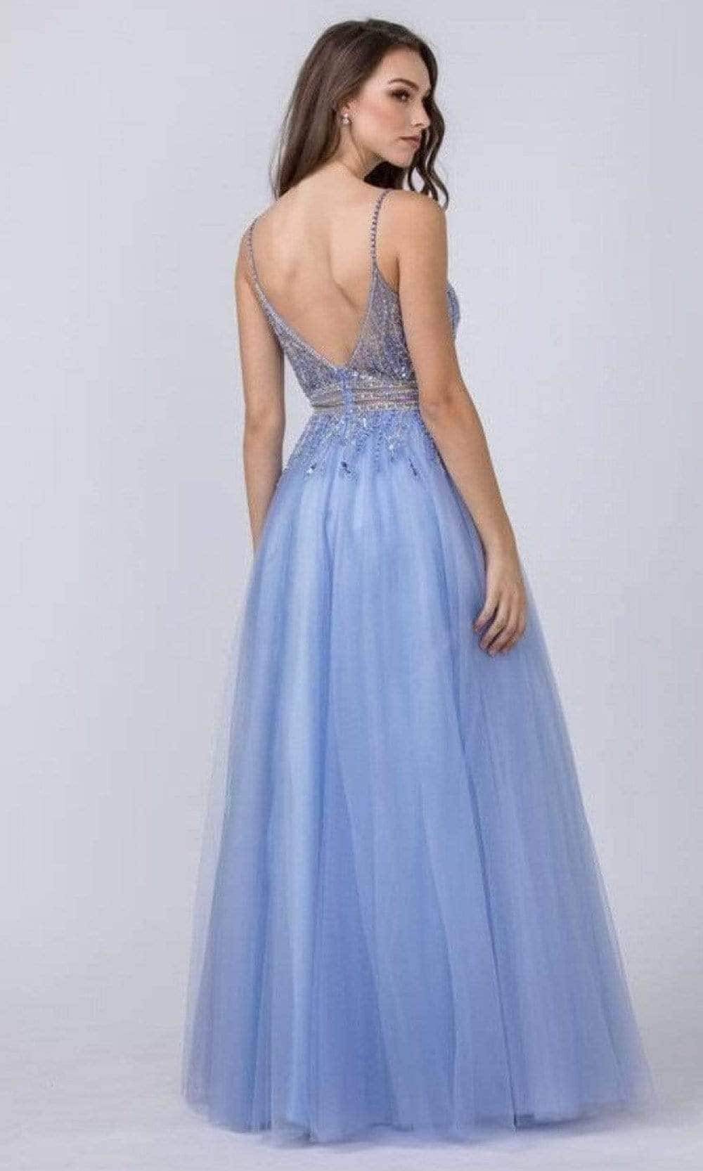 Create magical moments as you revel in this Trevi Collection L2378 evening dress. This dress showcases a V-neckline supported by thin straps in a beaded bodice. Revealing an A-line silhouette, this also shows a V back with back zipper closure. Feel dainty and feminine in this enchantingly designed Trevi Collection creation.