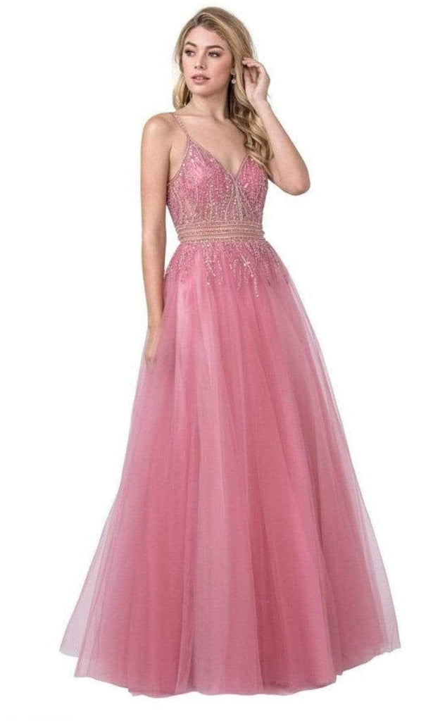 Create magical moments as you revel in this Trevi Collection L2378 evening dress. This dress showcases a V-neckline supported by thin straps in a beaded bodice. Revealing an A-line silhouette, this also shows a V back with back zipper closure. Feel dainty and feminine in this enchantingly designed Trevi Collection creation.